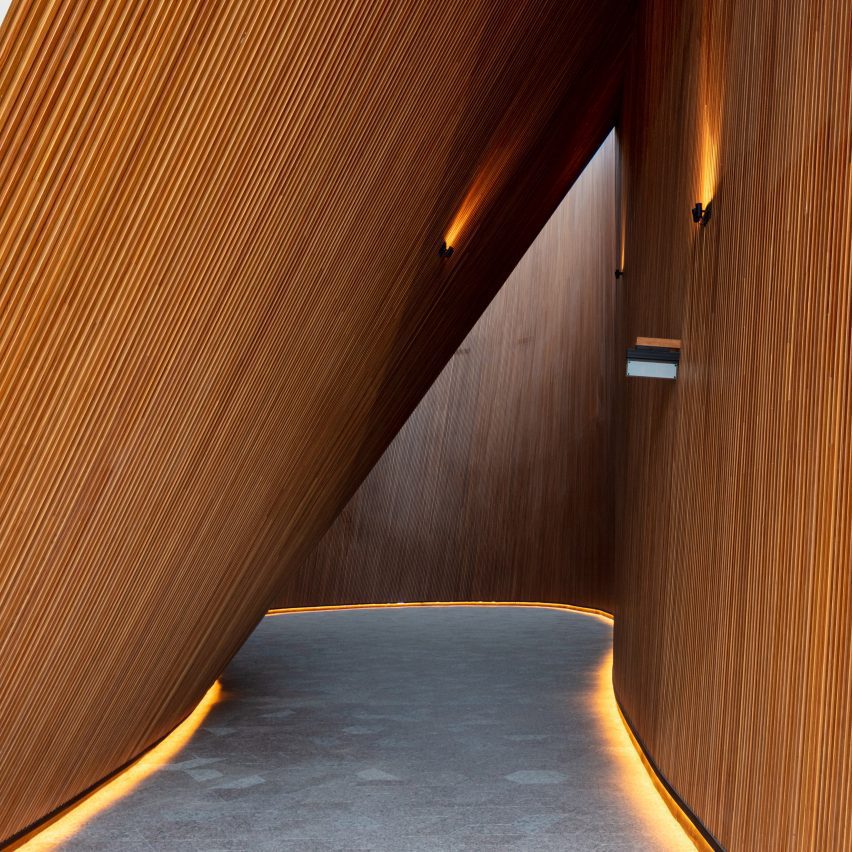 Neobična struktura od unakrsno lameliranog drveta prava je atrakcija u Dubaiju. Paviljon je dizajnirao britanska scenografkinja Es Devlin, a specifičnost ovog paviljona jeste što fasada ispisuje kompjuterski generisane pesme. Ko ima vremena, može da uživa u AI poeziji.