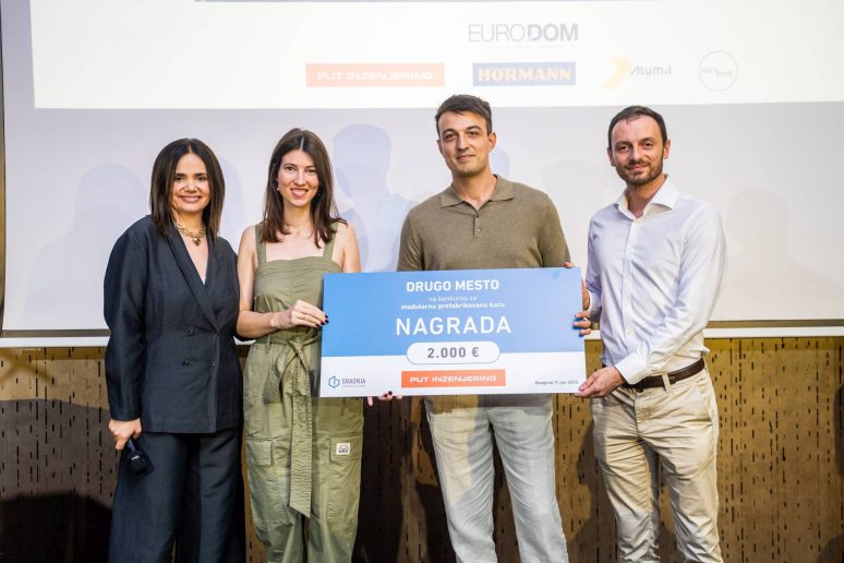 Na konkursu za modularnu prefabrikovanu kuću, koji je izazvao izuzetno interesovanje arhitekata i studenata iz celog regiona, dodeljene su četiri nagrade. Treće mesto ravnopravno su podelila dva tima: arhitektkinje Marija Blagojević i Iva Bekić iz studija Space Love, kao i studentkinje arhitekture iz Novog Sada Dajana Meleg i Jovana Buljević.