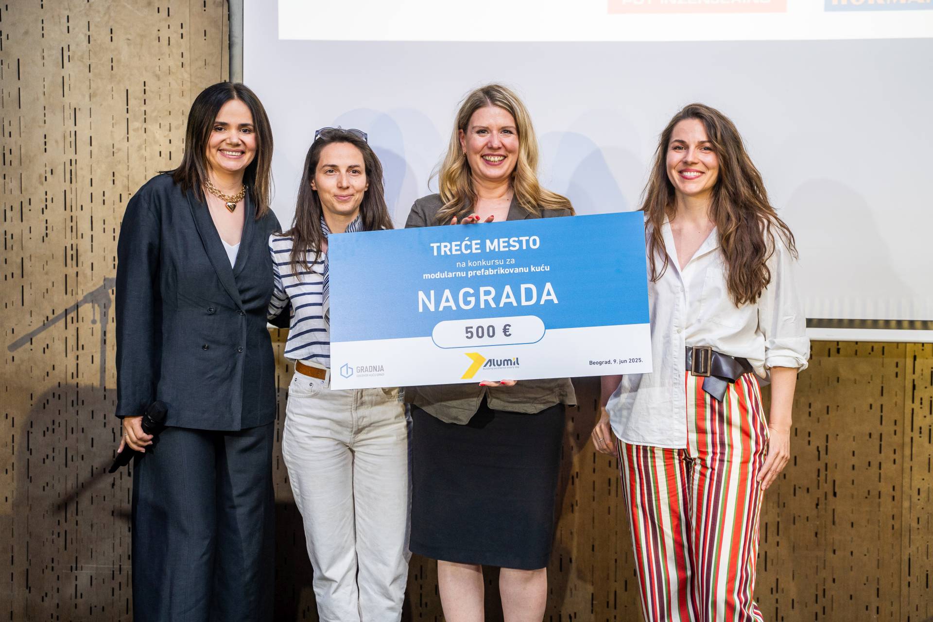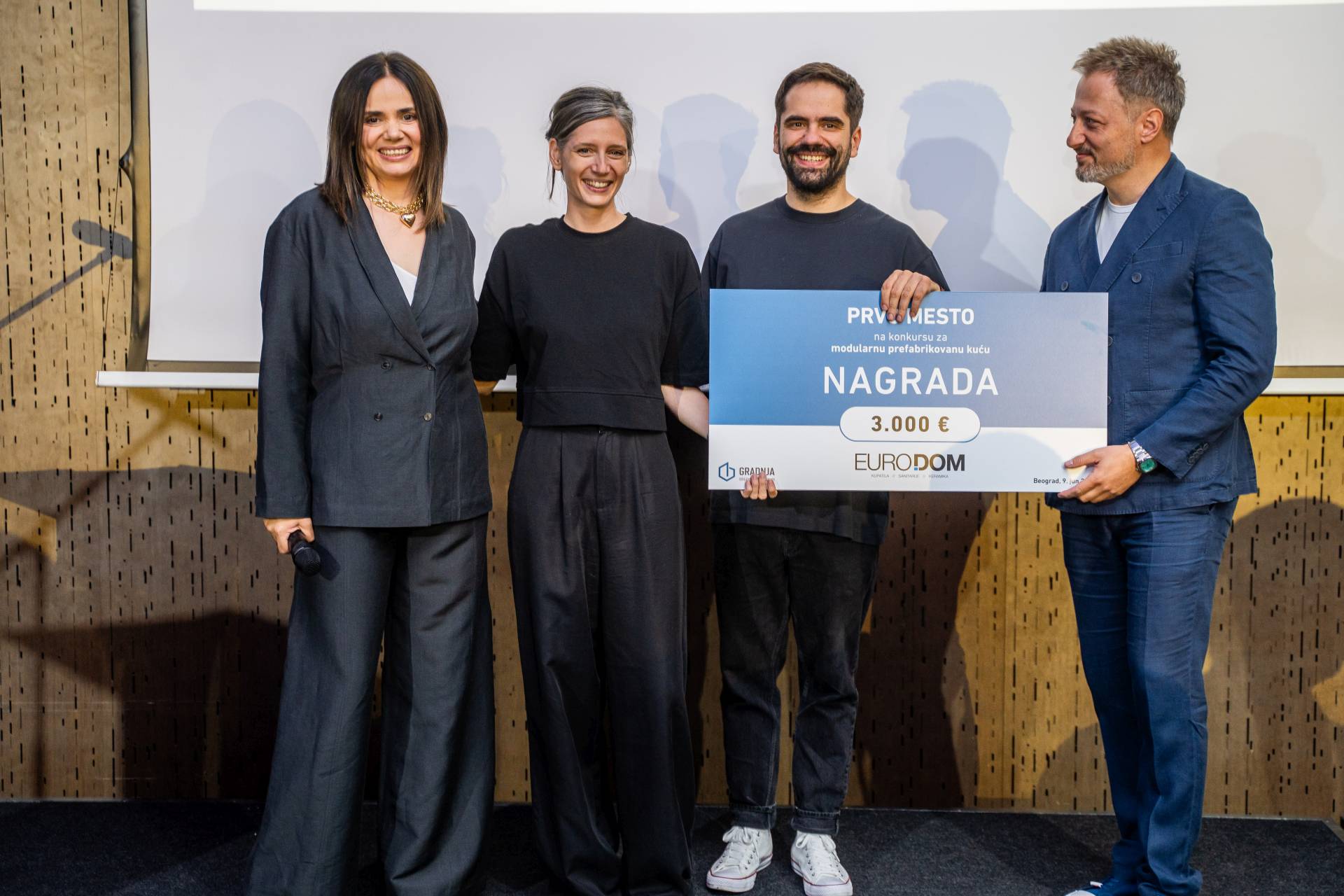 Na konkursu za modularnu prefabrikovanu kuću, koji je izazvao izuzetno interesovanje arhitekata i studenata iz celog regiona, dodeljene su četiri nagrade. Treće mesto ravnopravno su podelila dva tima: arhitektkinje Marija Blagojević i Iva Bekić iz studija Space Love, kao i studentkinje arhitekture iz Novog Sada Dajana Meleg i Jovana Buljević.