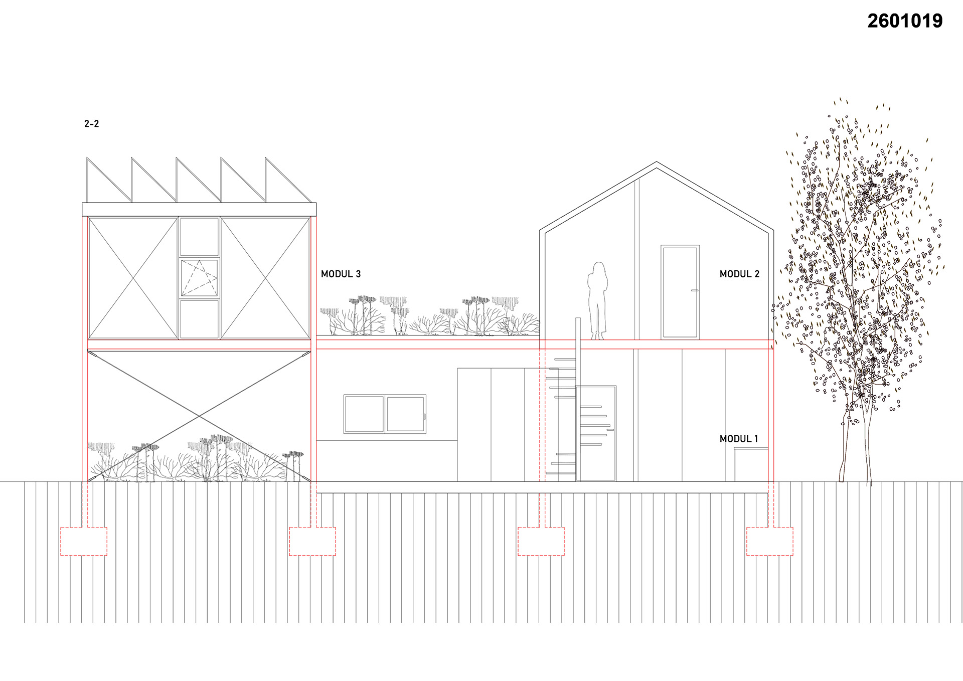 Koncept jasnog modularnog rastera omogućava racionalnu podelu prostora, laku i jednostavnu montažu, kao i mogućnost fazne izgradnje i prilagođavanje različitim korisničkim zahtevima. Drugim rečima, na ovom projektu principi prefabrikacije i modularnosti korišćeni su na neposredan i direktan način.