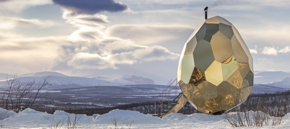 Bigert & Bergström su konstruisali saunu unutar džinovskog zlatnog jajeta, kako bi se žitelji Kiruna u Švedskoj osećali malo bolje pošto će se čitavo mesto morati relocirati tri kilometara zbog rudarstva. Osim što je vizuelno veoma atraktivno, ovo solarno jaje u funkciji saune istovremeno može da primi čak osmoro ljudi. Pogledajte ceo projekat ovde.