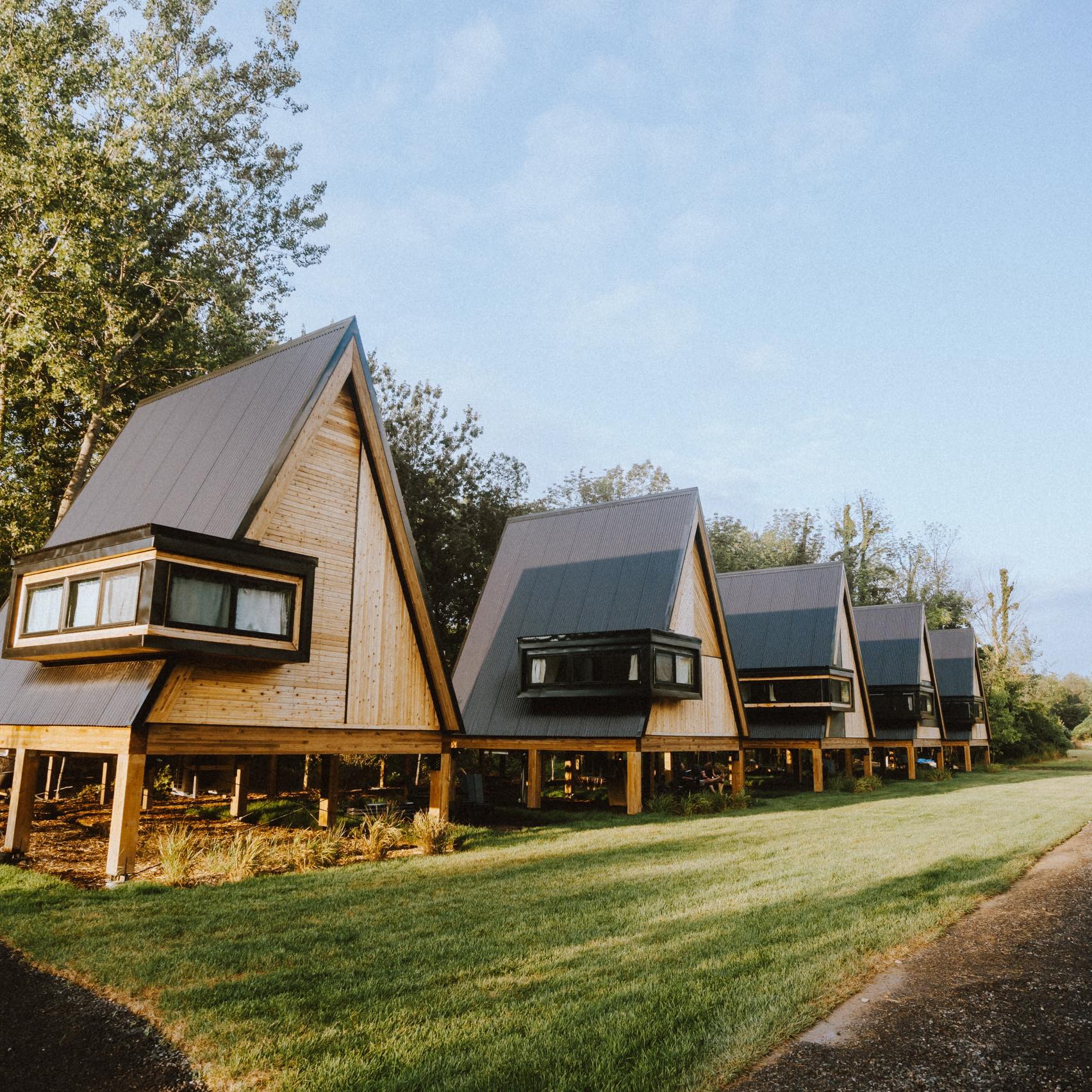 Smešten uz obalu jezera u državi Njujork, rizort sastavljen od pet A-frame montažnih kuća predstavlja spoj prirode i inženjeringa, obeležen strukturalnim dizajnom koji potpisuje beogradski studio Acetra.