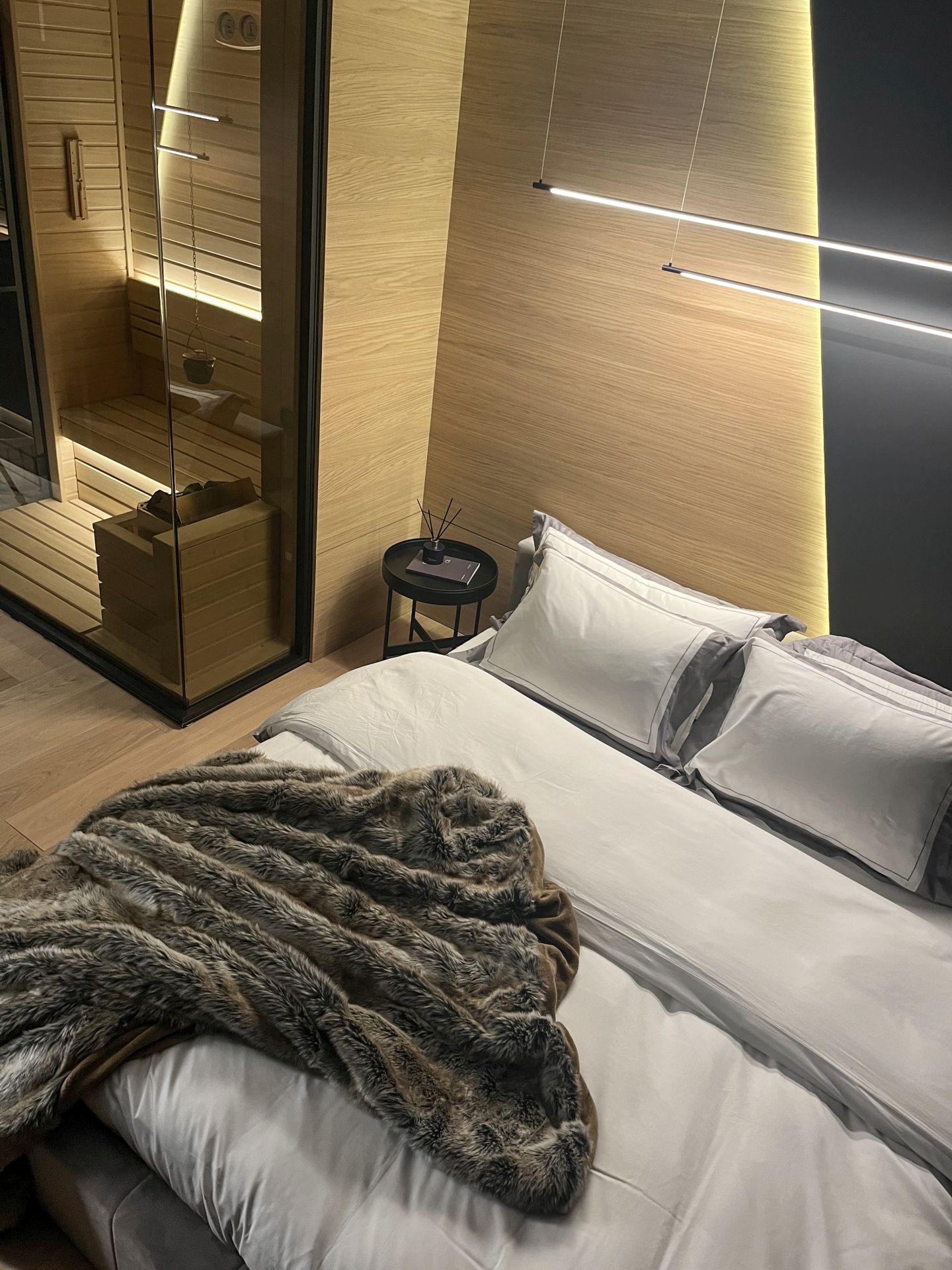 „Sve spavaće sobe omogućavaju divan pogled ka nebu, dok su zajednički porodični prostori okrenuti prema spektakularnom pejzažu planine. Osim osnovnih prostorija, roditeljska soba ima i malu saunu, dok se na velikoj terasi nalazi hidromasažna kada, pružajući dodatni luksuz i prostor za opuštanje“ – kaže autorka.