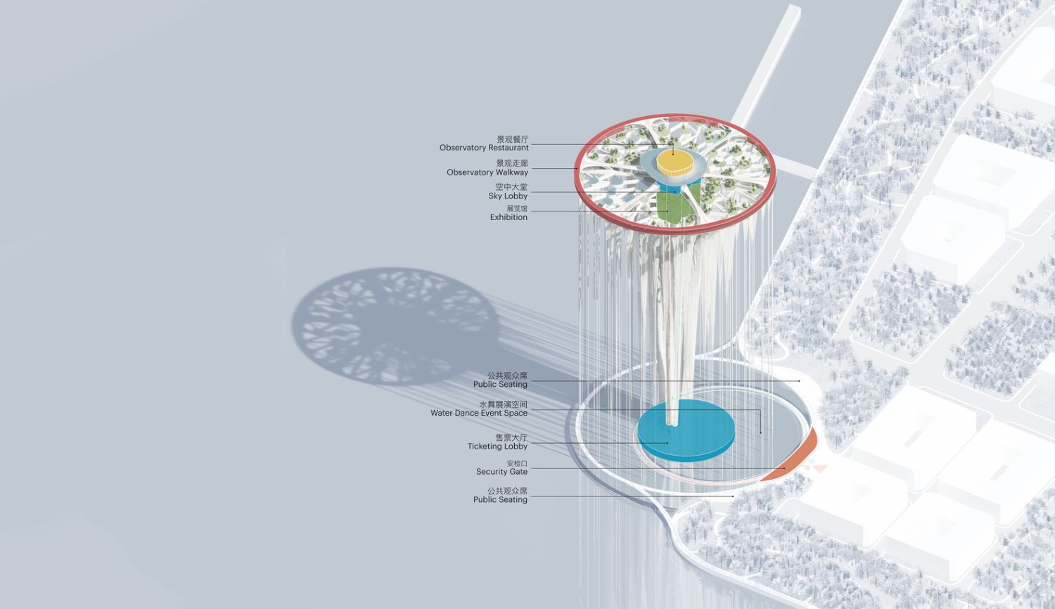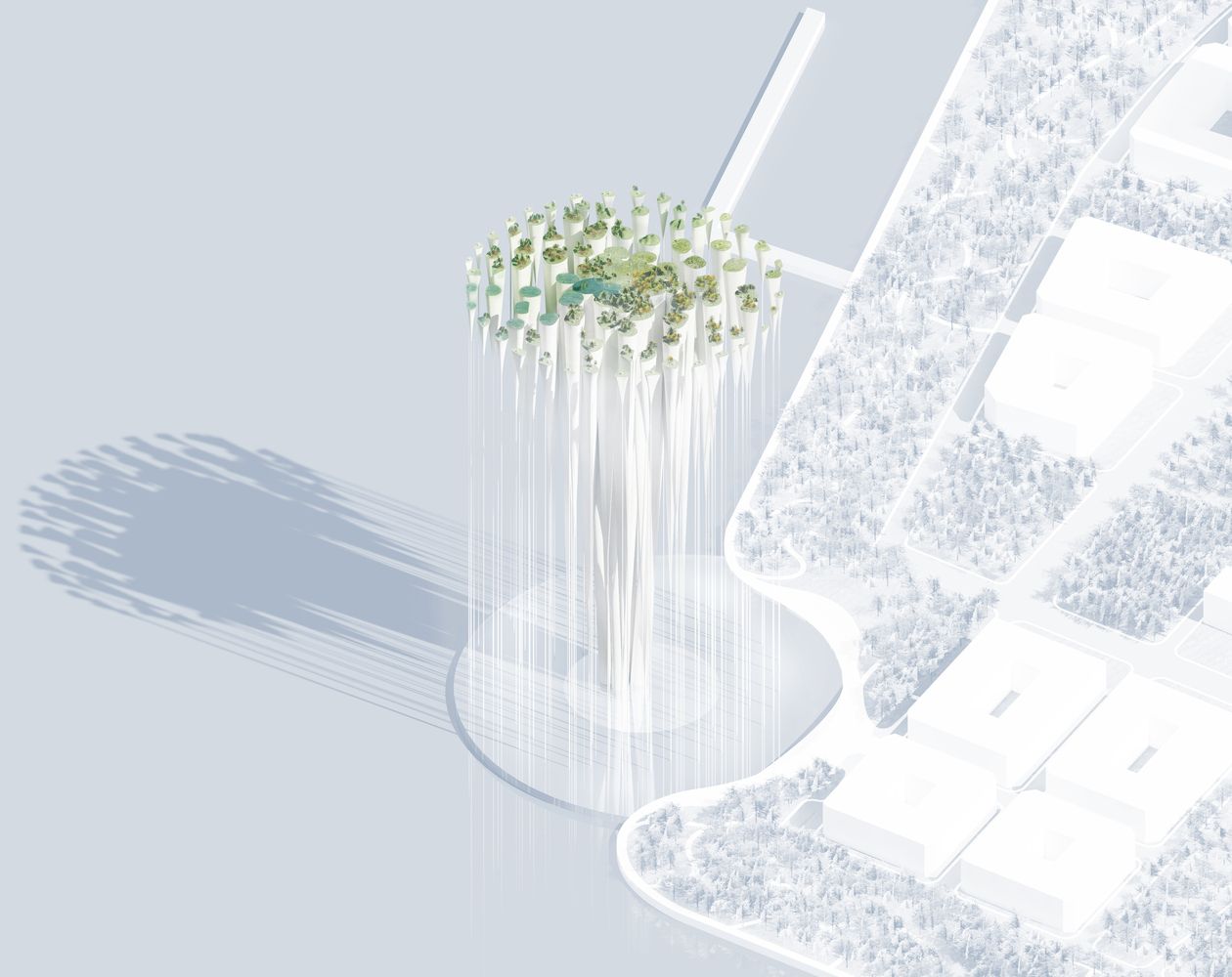 Na osnovu odgovora do kojih su došli i trenutne urbane strukture grada, arhitekte su predložile rešenje koje podseća na grupu ostrva, a ujedno i vazdušni grad budućnosti ili čak fontana koja kao da visi u vazduhu.