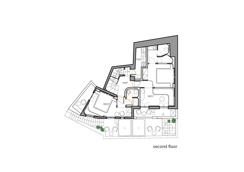 Za uzglavlja i vrata ormara KLAB je koristio lokalno drvo perforirano šarama. Sofe i kreveti organskih, zaobljenih oblika napravljeni su po meri.