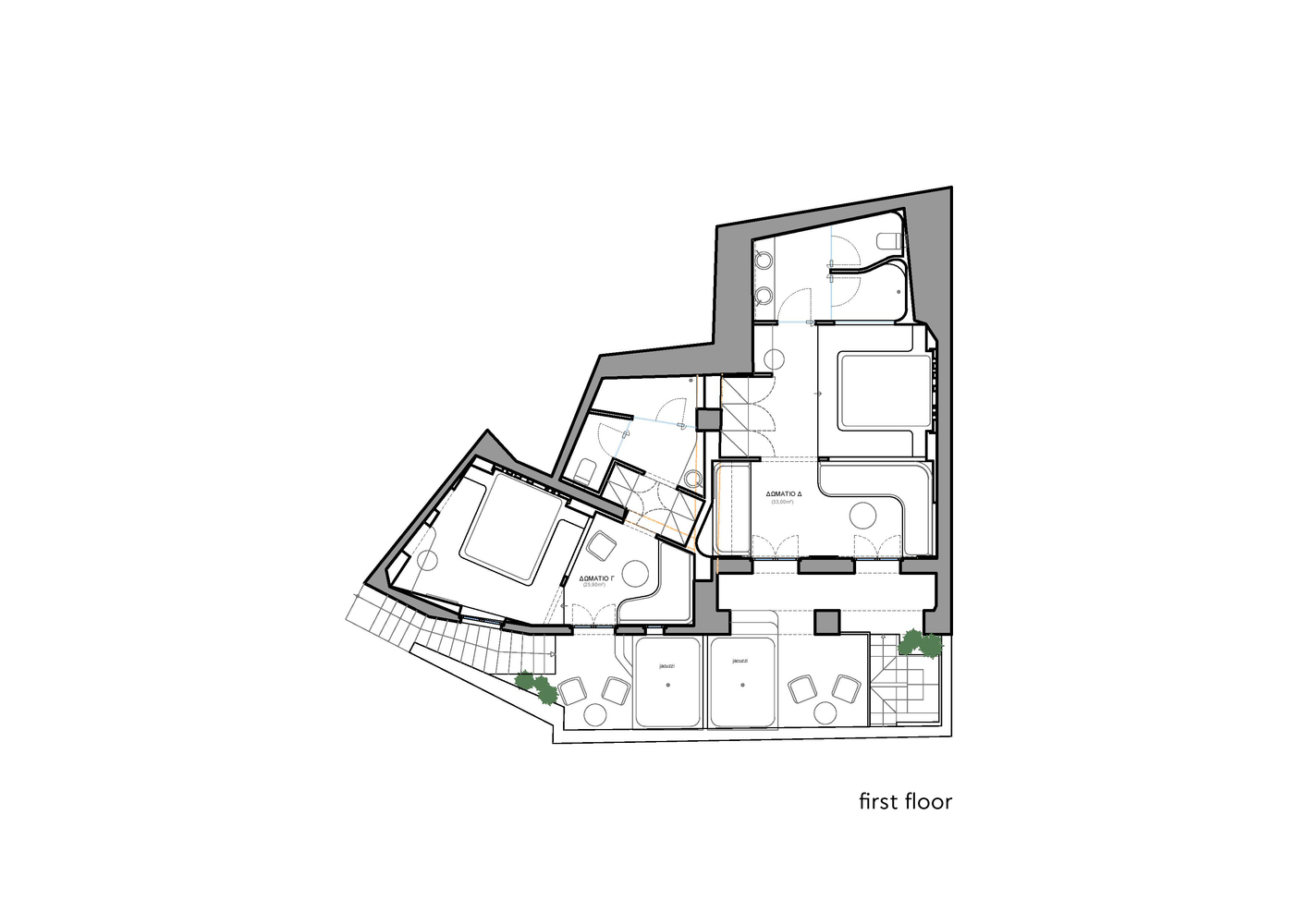 Novi svodovi i lukovi i zakrivljene ivice tako ponovo stvaraju jedinstvenu auru tradicionalnih kuća na ovom grčkom ostrvu, objasnile su arhitekte za ArchDaily.