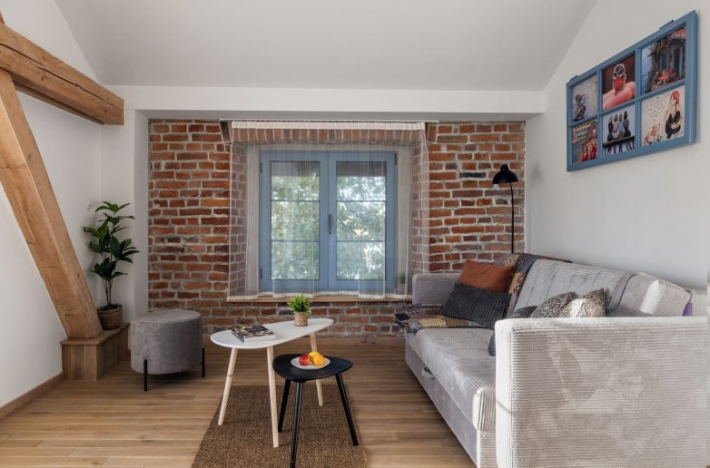 Biro plus nastojao je da očuva istorijsku vrednost objekta, istovremeno vodeći računa o udobnosti i funkcionalnosti apartmana. Spoljni izgleda zgrade karakteriše crvena fasadna opeka koja je sada i sastavni deo enterijera, a sačuvana je i autentična plava boja prozora.
