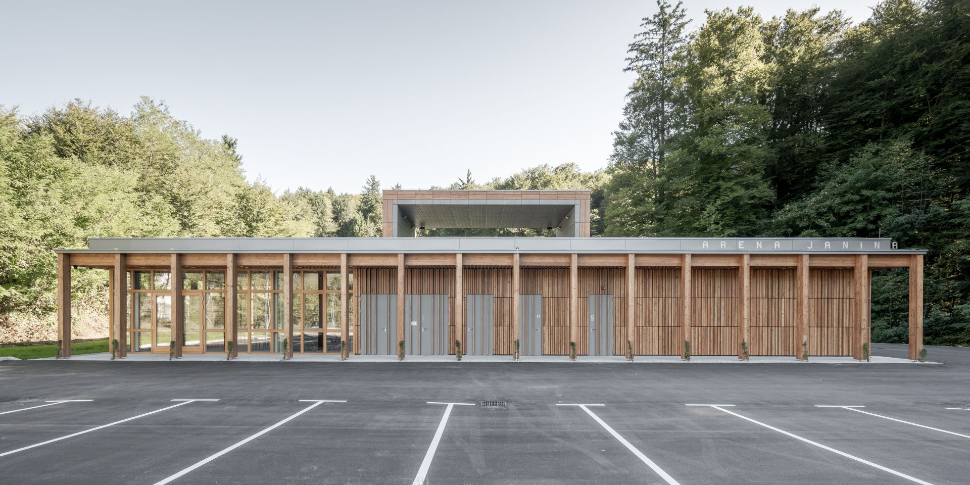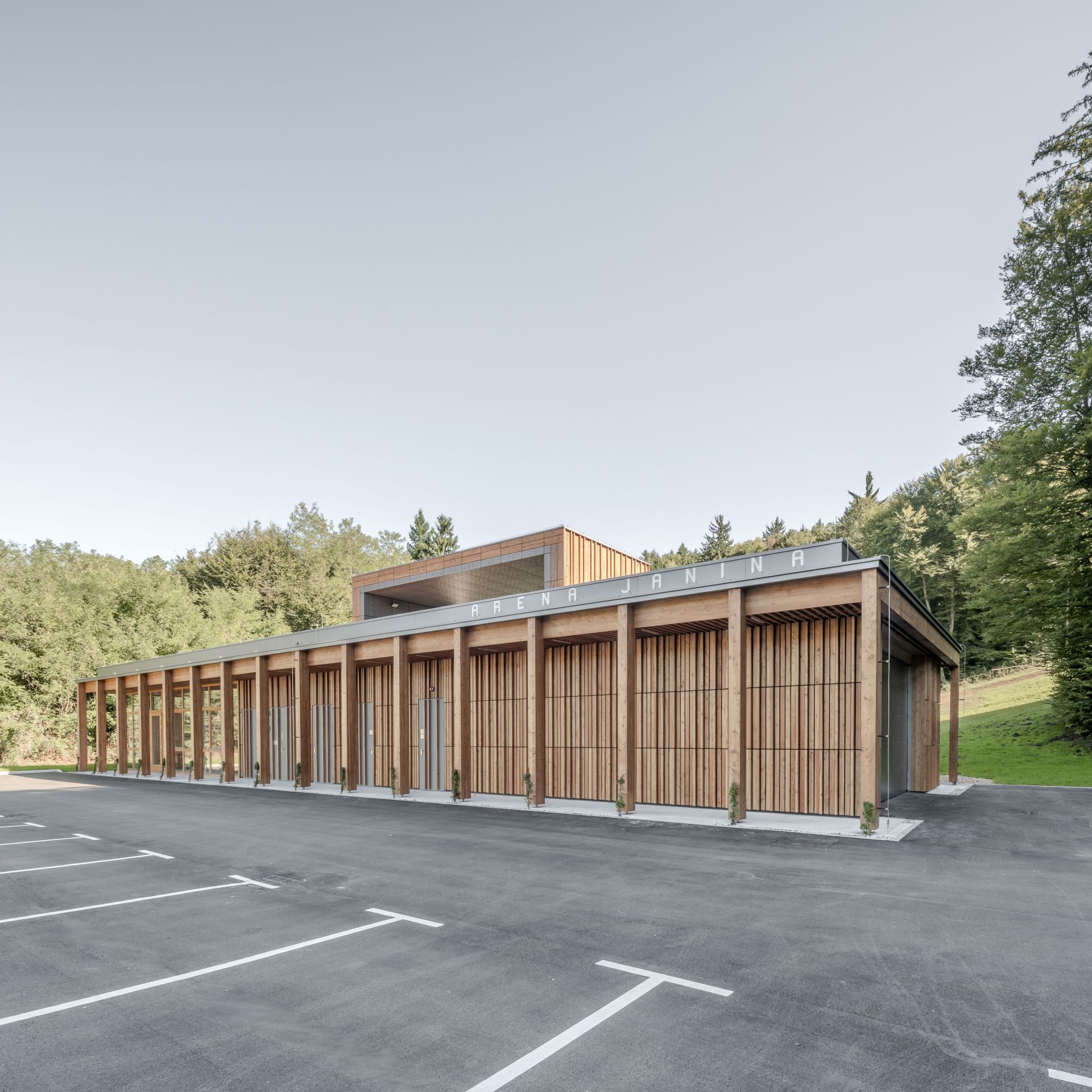 Kao savremeni drveni paviljon u prirodnom okviru Rogaške Slatine, Arena Janina uspeva da objedini različite programe u kompaktan arhitektonski gest koji poštuje kontekst.