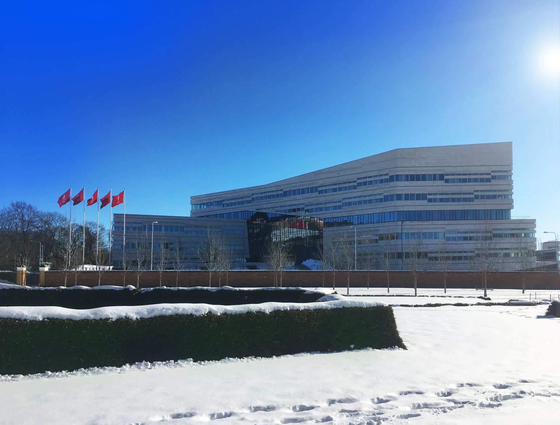 Primeri su Frihamnskyrkan, crkva u Geteborgu, koja liči na hangar ili tržni centar (Nagrada Kasper Kalkon za 2023.) ili Liljevalchs+ (Stokholm, 2022), koji je izložbeni prostor ali izgleda kao totalitarni bunker.