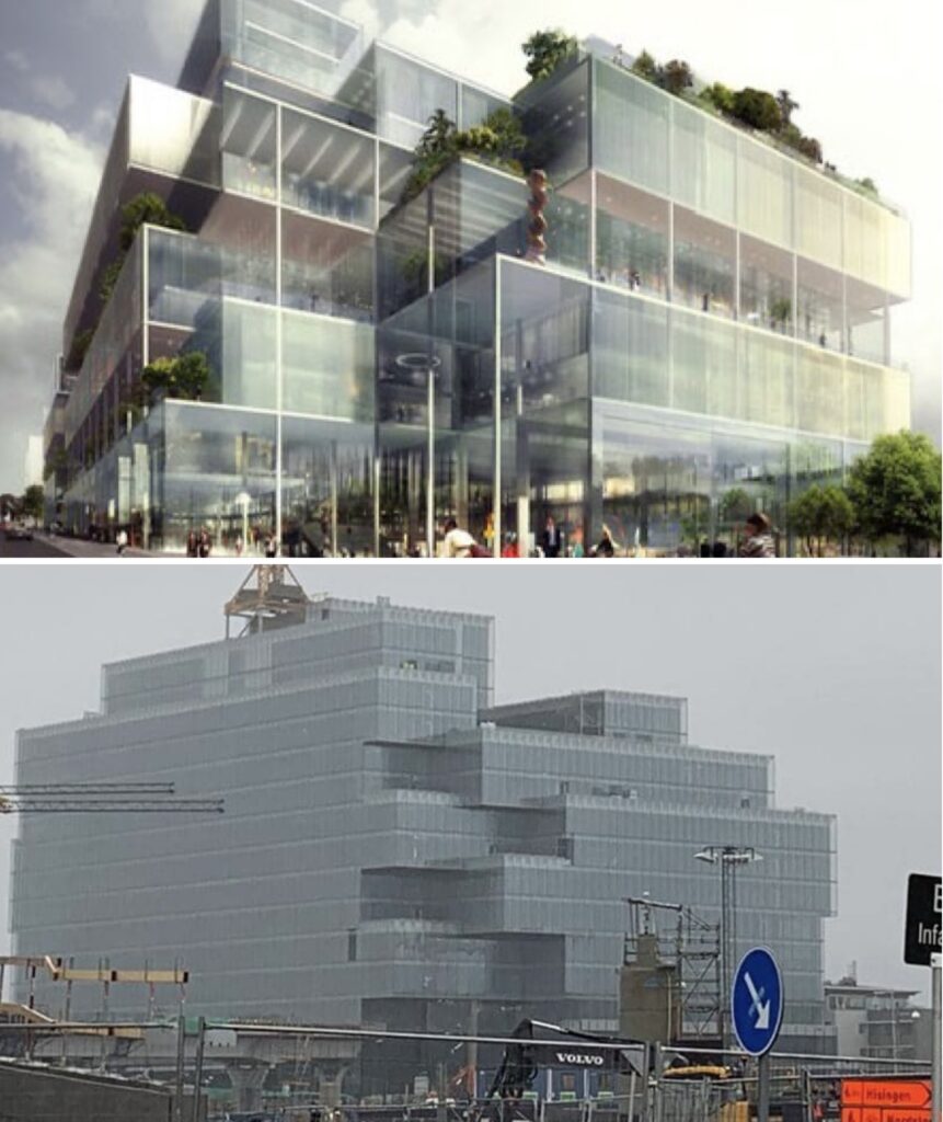 Često se desi da arhitekte predstave plan zgrade koji je doslovno nemoguće izvesti u praksi, i javnost se inicijalno oduševi, da bi izvedba bila razočaravajuća.