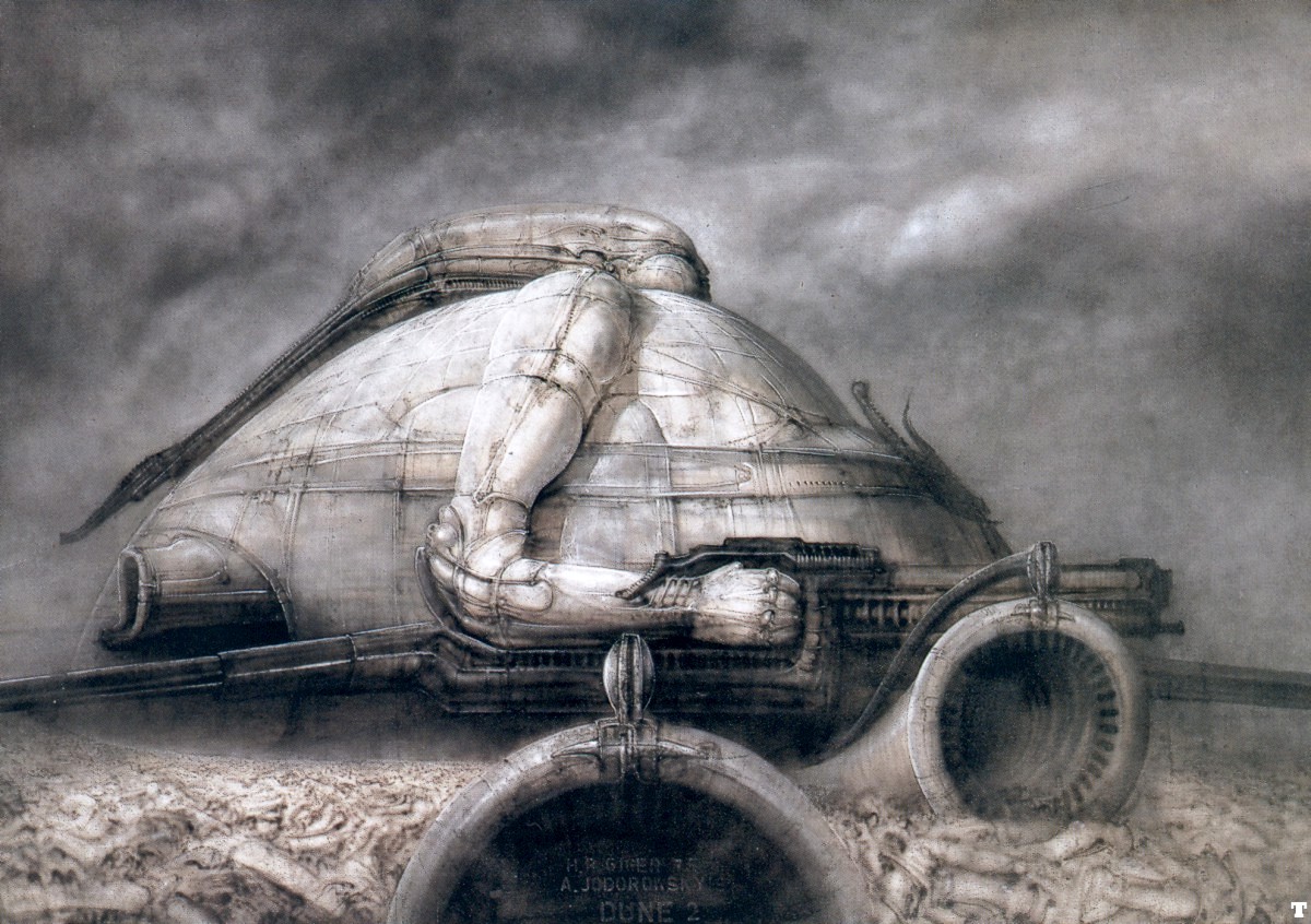 Iako je postojala inicijativa da Gajger sarađuje sa Alehandrom Hodorovskim, legendarnim rediteljem i scenaristom, na projektu prve ekranizacije romana Dina, koji nikada nije realizovan i od čega su ostali crteži, makete, ali i unikatno dizajnirani komadi nameštaja, koji su kasnije proizvedeni u ograničenim serijama i kojima je opremljeno nekoliko, posebno osmišljenih tematskih Gajger kafea, čiji ambijent je kreiran u skladu sa njegovim biomehaničkim konceptom.