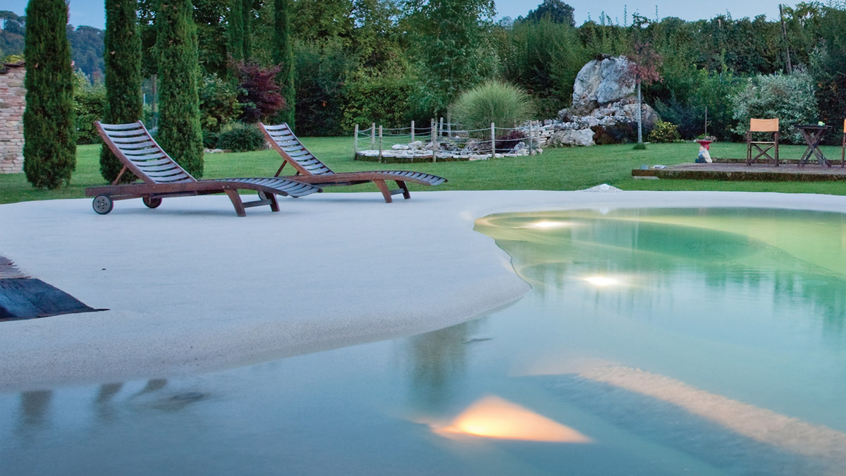 Ljubitelji dizajna i poštovaoci odvažnog stila će ceniti modernu varijantu prirodnog bazena koju karakterišu nepravilni, ekstravagantni oblici.