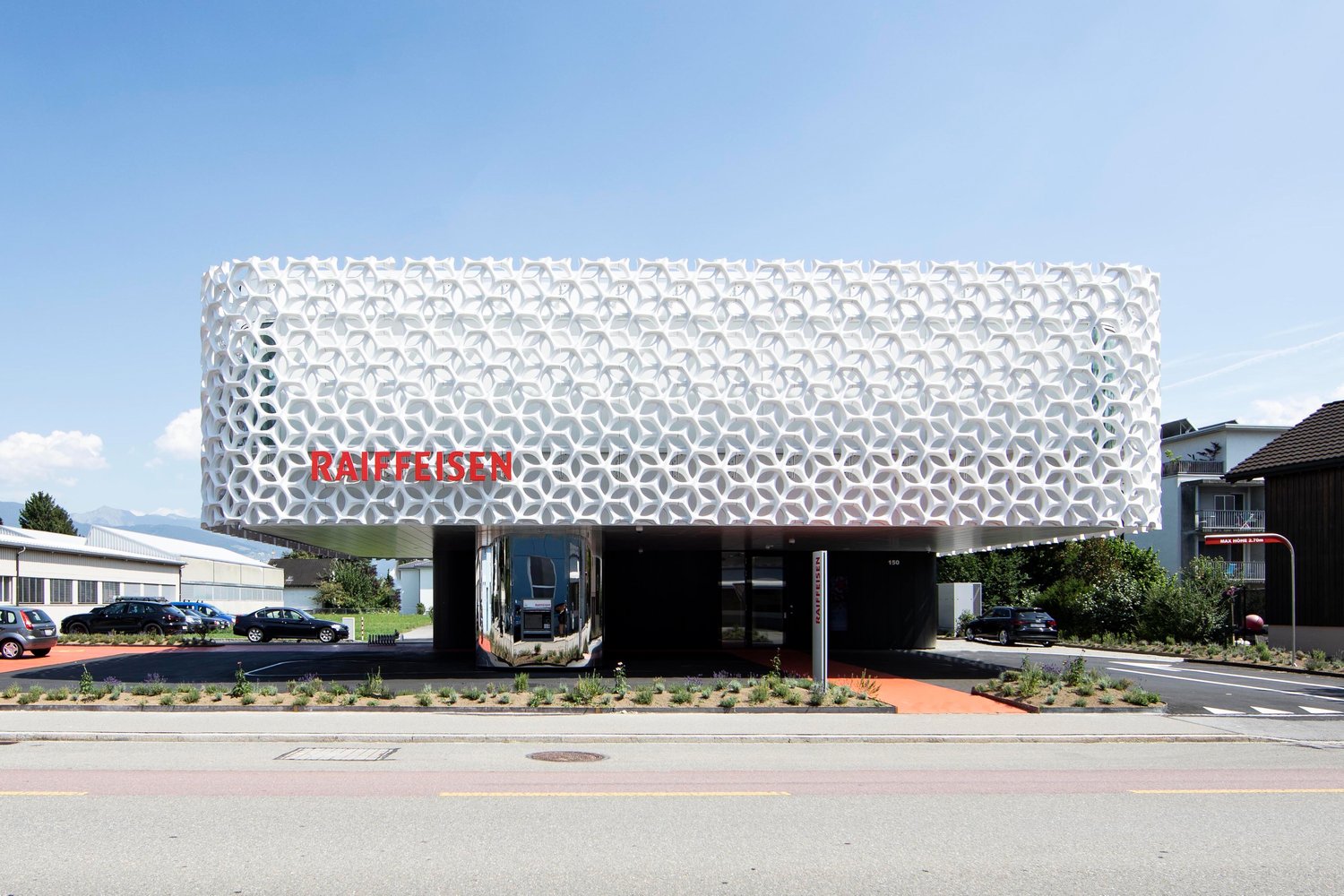 Po projektu Calros Martinez Architects u gradu Oberriet u istočnoj Švajcarskoj, nikla je filijala Raiffeisen Oberes Rheintal banke koju karakteriše ne samo inovativna arhitektura već i briga za prirodnu okolinu.