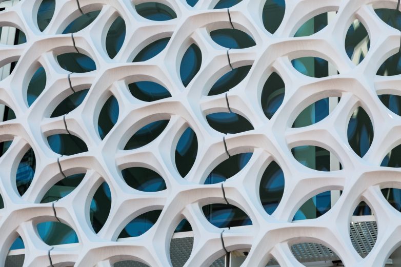 Ova otvorena mrežasta fasada ima ukupno 340 metara kvadratnih, a napravljena je od 59 elemenata.