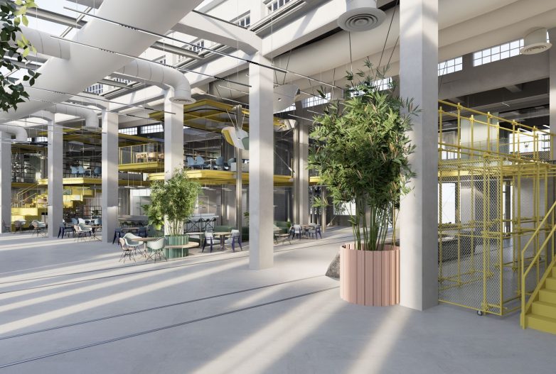 Međusobno su vizuelno povezane, tako da sve zajedno čine veliki otvoreni radni pejzaž novog haba, i dramatično naglašavaju moćni ritam originalnih armirano-betonskih ramova Ložionice.