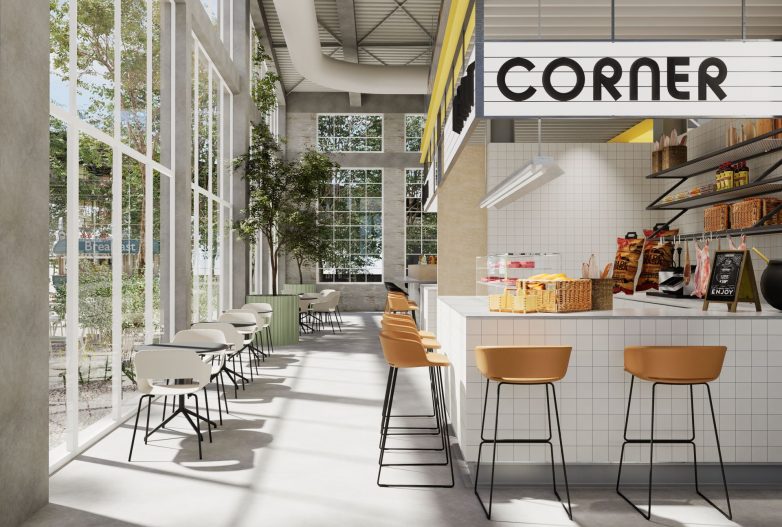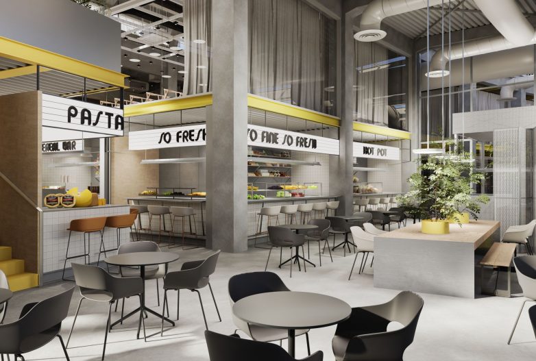 „Ova transparentnost prostora je bila imperativ kako bismo zadržali dugačke vizure lučne, podužne ose objekta i vezu sa spoljašnim prostorom preko restorana ka bašti. Otvoreni prostor velike visine preseca čelična, žuta, lučna galerija kao nastavak vizuelnog kontinuiteta sa centralnim delom Ložionice“ – kažu dizajneri enterijera.