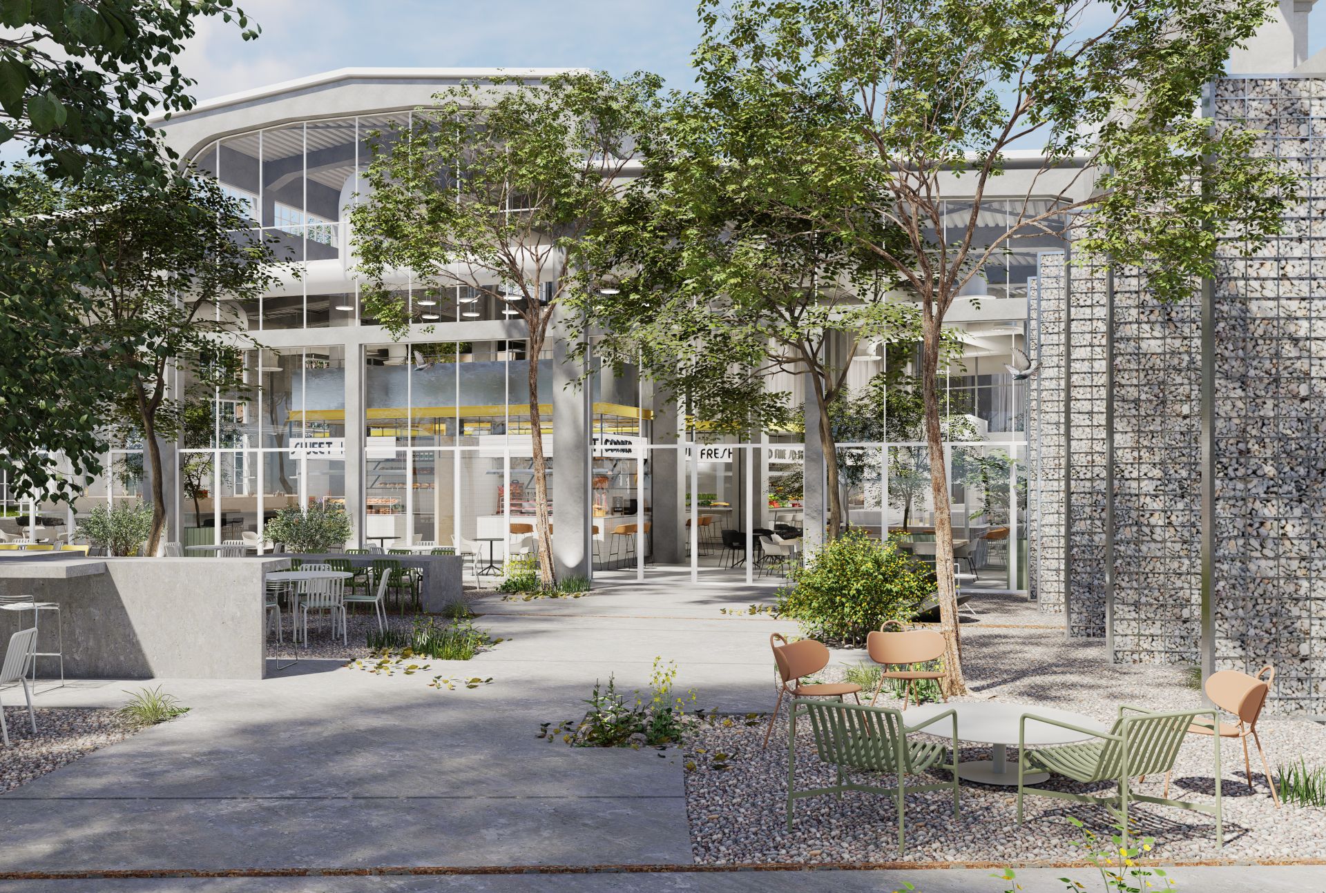 Otvoreni prostor novog kompleksa projektovan je kao potpuno novi tip javnog gradskog prostora u Beogradu. Predviđeno je da se lako transformiše za potrebe različitih namena – od neformalnog parka za rad, izložbe i sajmove na otvorenom, do prostora za velike manifestacije i skupove.