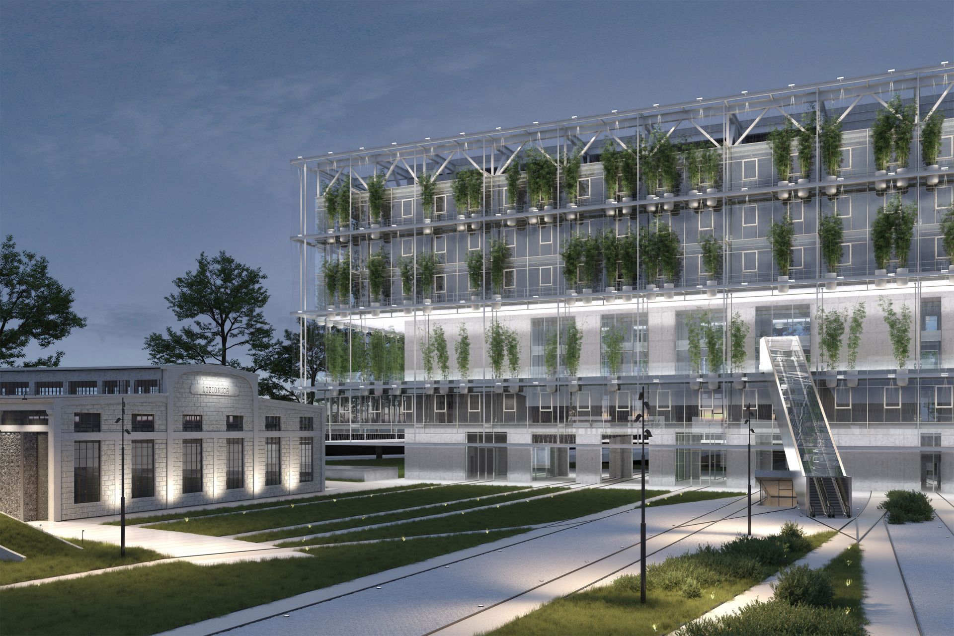 Nova poslovna zgrada je odignuta od terena tako da se ispod nje teatralno uvode posetioci u ceo kompleks, i to upravo pravcima nekadašnjih šina kojima su dolazili vozovi sa Glavne železničke stanice.