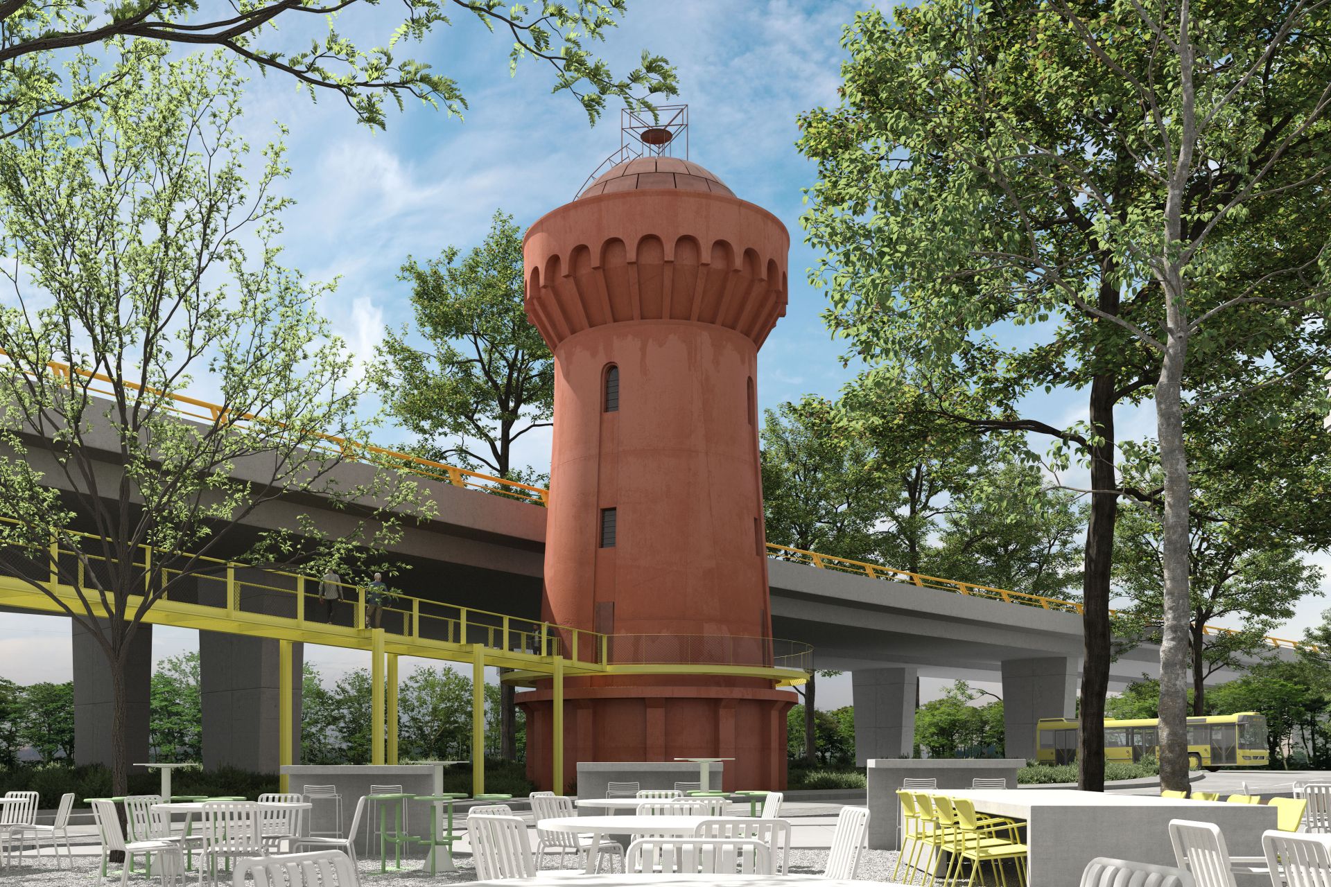 Objekat Vodotornja će biti u potpunosti rekonstruisan, sa završnom obradom u terakota crvenoj nijansi, u duhu crvene konstrukcije mosta Gazela koji je značajno odredio njegovu sudbinu u prošlosti – Mostarska petlja i most Gazela su građeni u periodu 1966–1970, i tako su pozicionirani u prostoru da direktno tangiraju Vodotoranj, ali ga ostavljaju u životu.