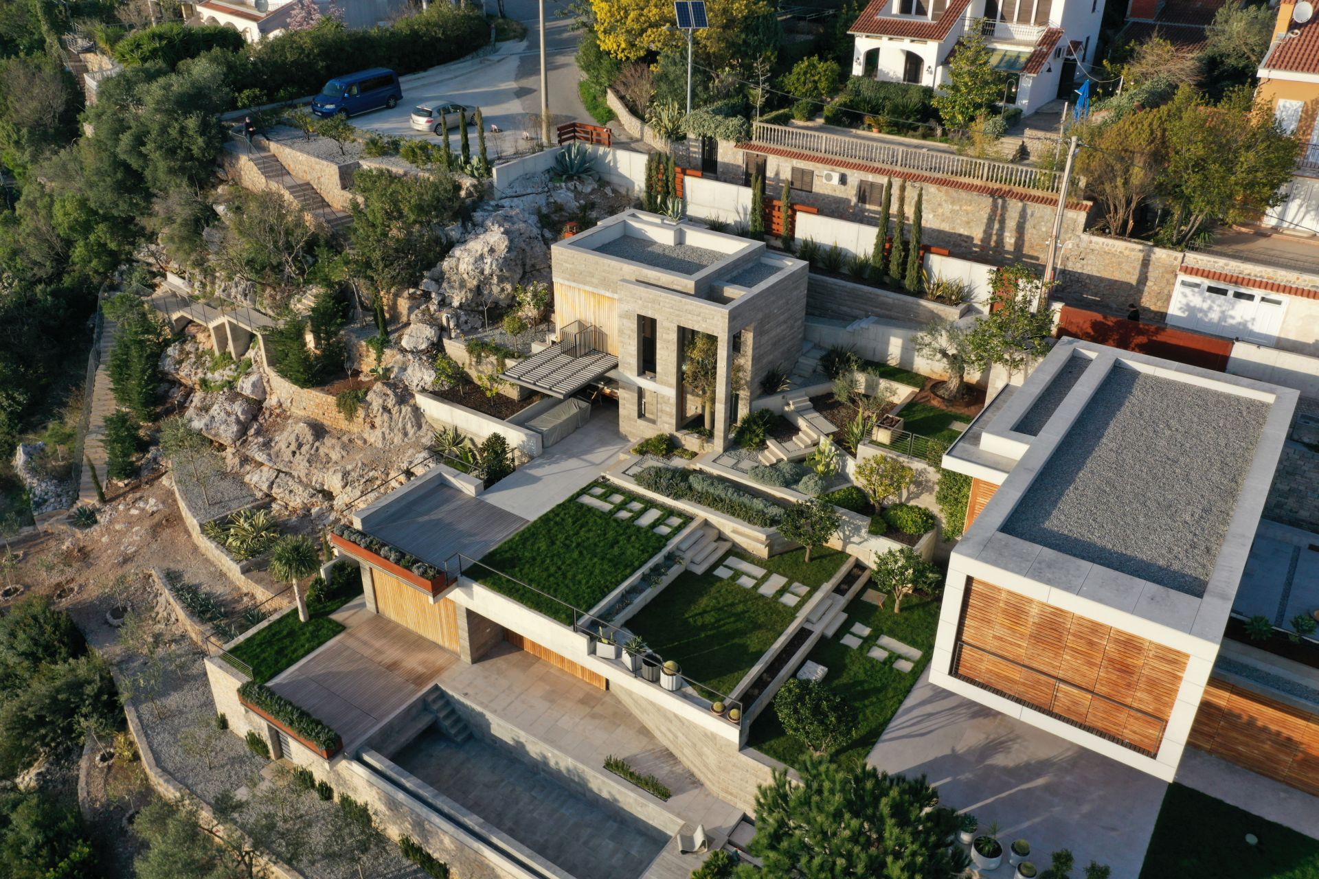 Divan gest uvažavanja mediteranskog ambijenta u pogledu principa pejzažne arhitekture. Genralno, kompletna kompozicija ovog stambenog objekta je apsolutno u skladu sa mediteranskim ambijentom. Bravo!!!!