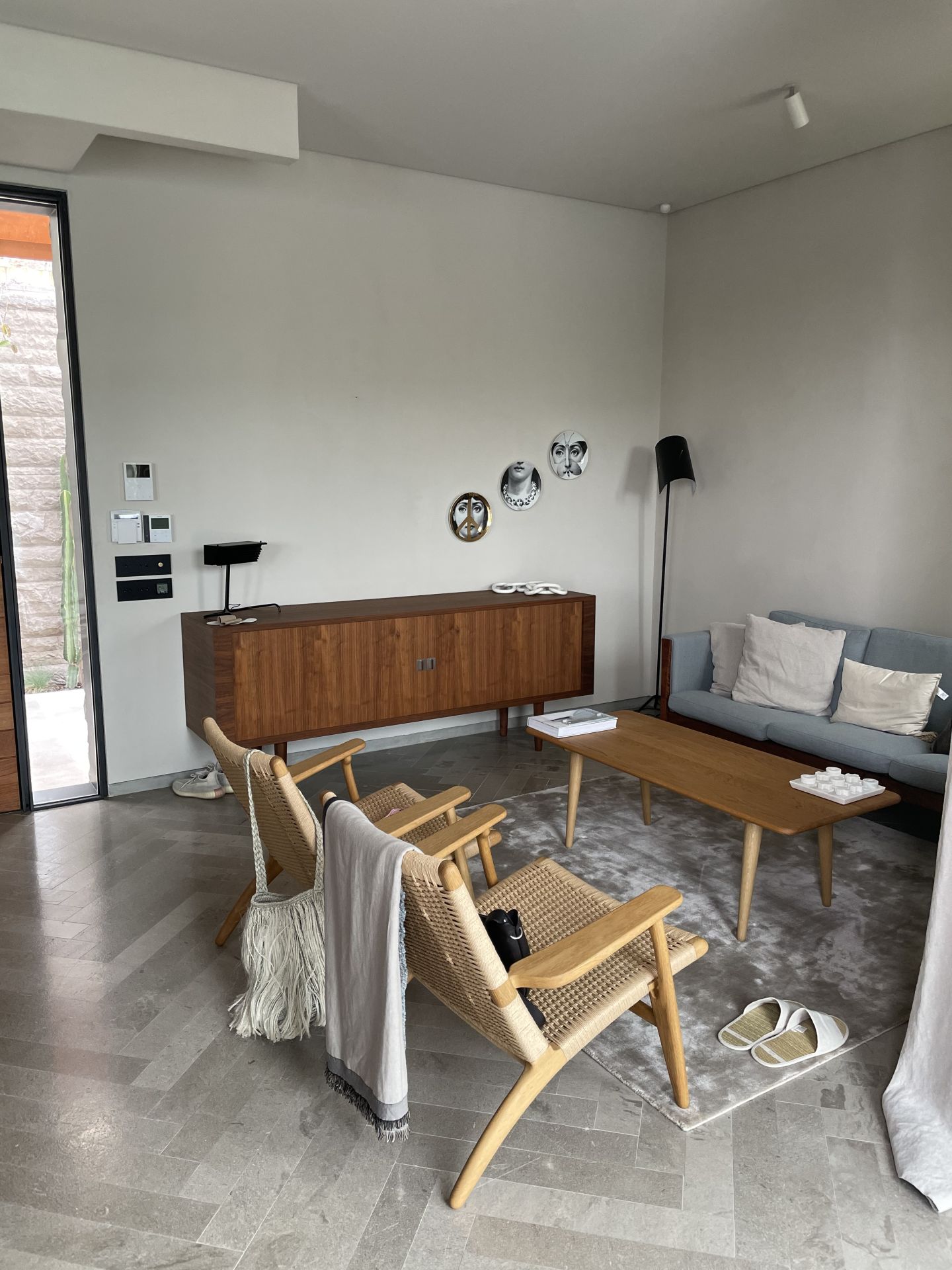 Razvijena struktura kuće formirana je oko složenog sistema uređenja dvorišta, aktivirajući i u velikoj meri oslobađajući prostor parcele ukopavanjem donjeg apartmana ispod kote glavnog platoa.