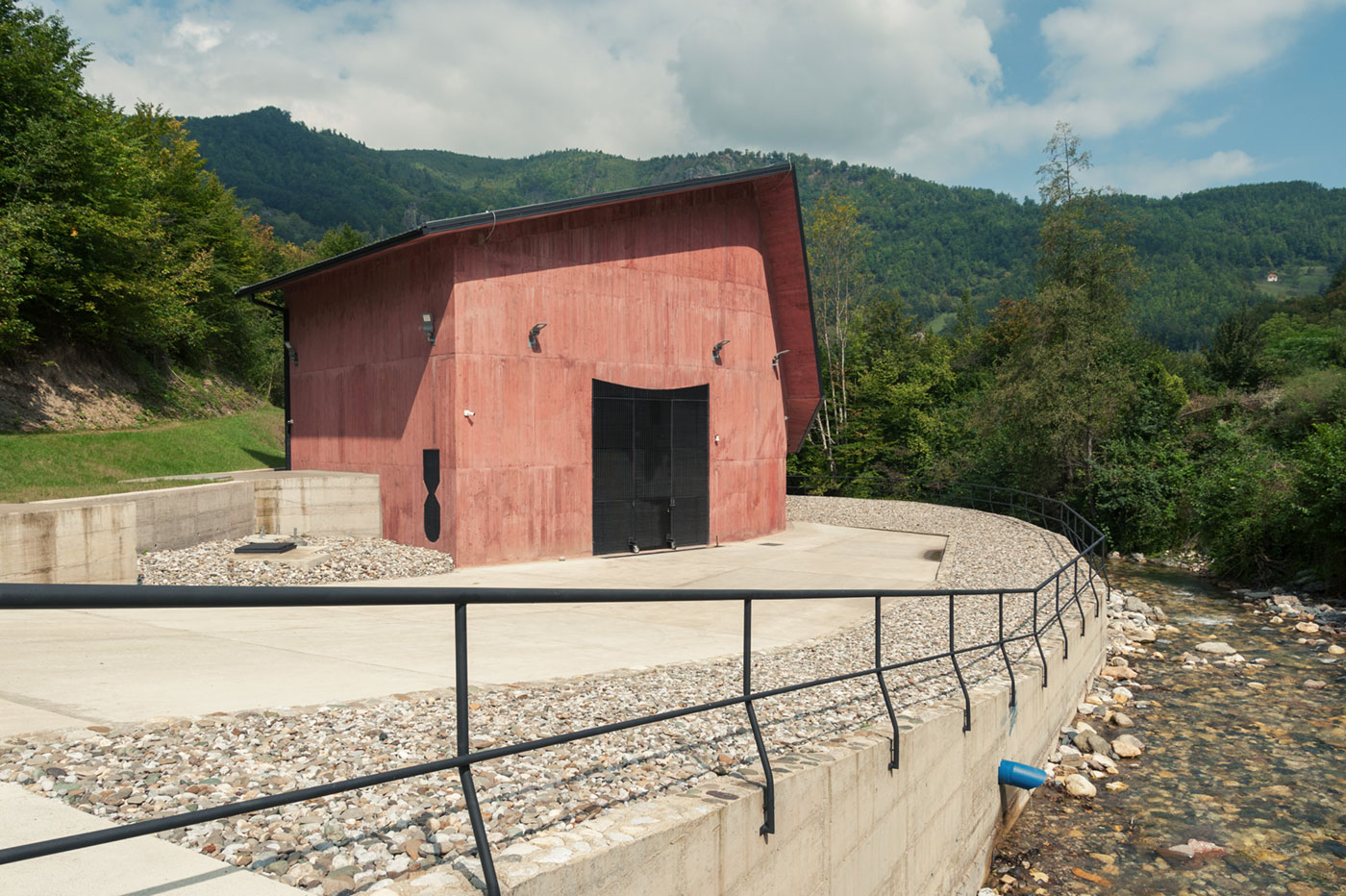 Kontekst u kojem se objekat nalazi čini klanac koji je reka probila, i koja kada se otapaju snegovi, nosi ogroman rečni materijal sve od izvorišta nizvodno. „Ovaj kontekst je dar koji smo morali da poštujemo. Uzeli smo od reke i prilagodili potrebi.“ kažu arhitekte. Tako se lokacija kultivisala materijalom koji može naći u koritu same reke. Objekat deluje kao da se nasukao na obalu i da se tu smirio.