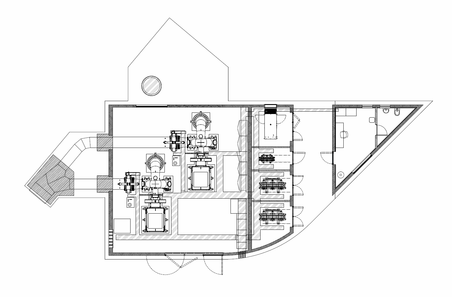 Prvi utisak koji ostavlja zgrada je takav da on deluje znatno manji nego što zapravo jeste. Vrata izgledaju kao da su dimenzionisana prema čoveku, a ne prema turbinama. Tek nakon što se približi objektu, doživljava se njegova stvarna dimenzija.