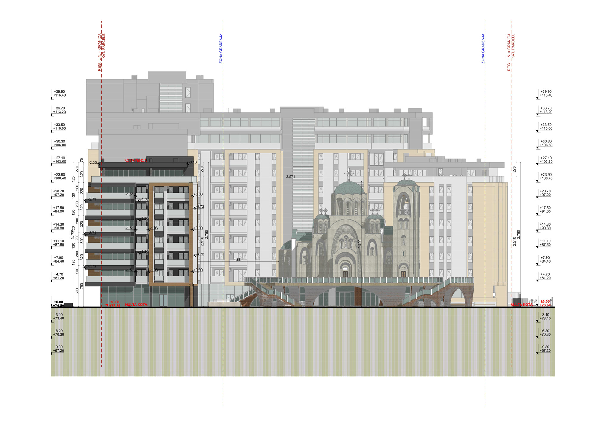 Pored Blagoveštenske crkve, u kompleksu je projektovano ukupno 358 stanova, 28 lokala, 52 poslovna apartmana i garaža sa 802 parking mesta.