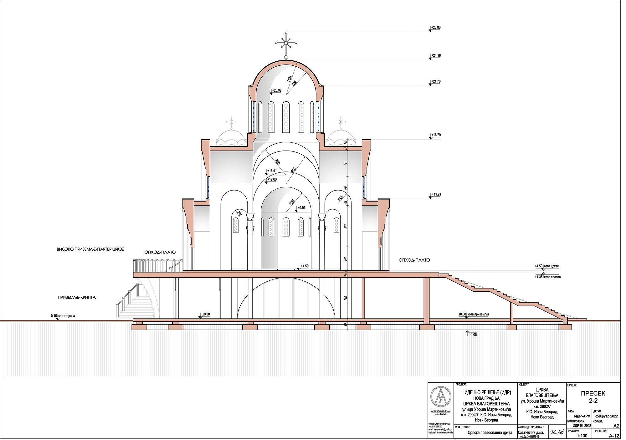 Koncept kompleksa je da se iznad prizemne kripte formira plato-ophod u čijoj sredini bi se nalazio hram. Pristupna stepeništa zajedno sa zelenim kaskadama bi formirala “sveto brdo”, na čijem vrhu bi se nalazila crkva, navodi se u dokumentaciji.
