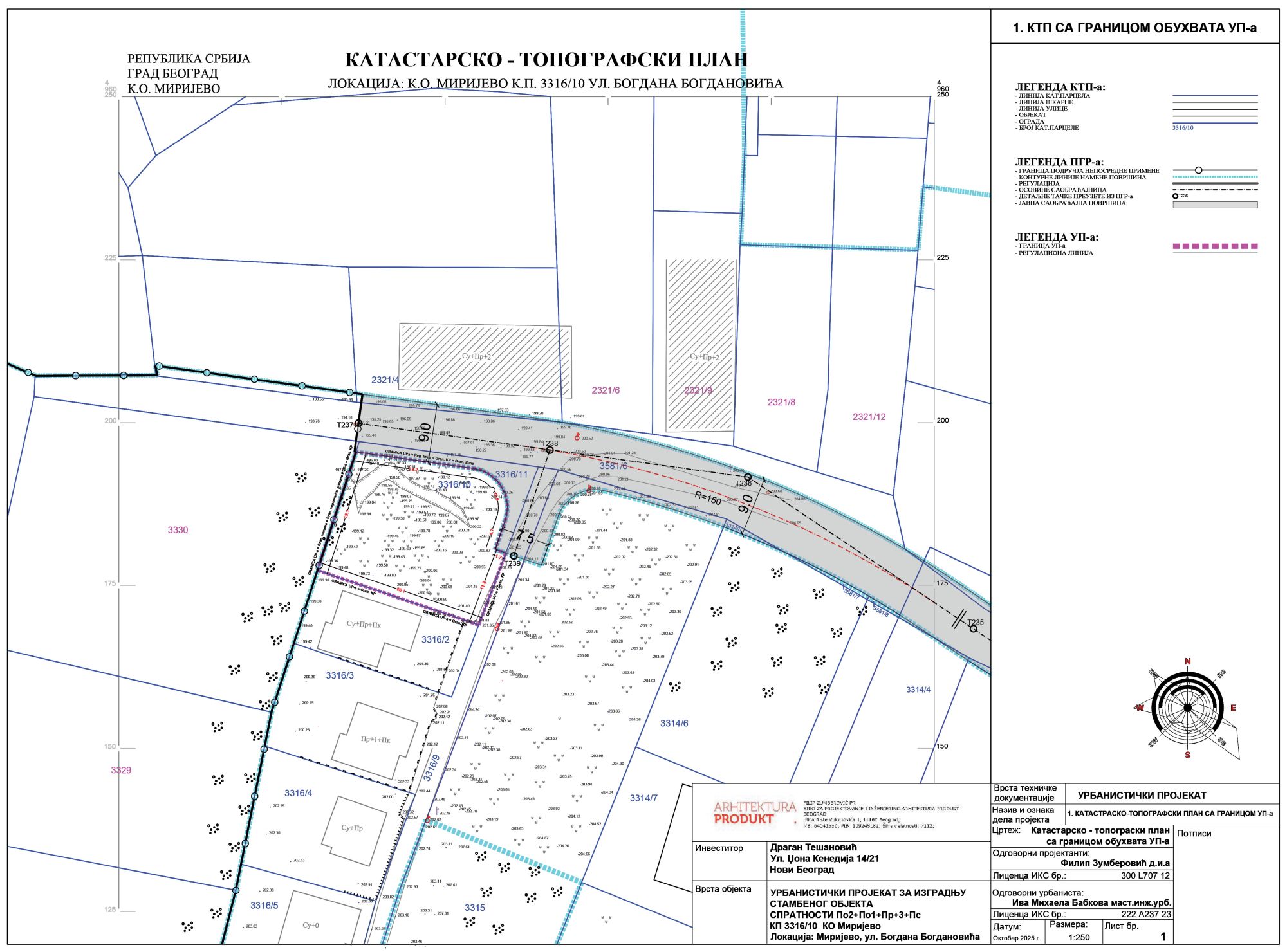 Urbanističkim projektom obuhvaćena je katastarska parcela 3316/10, KO Mirijevo, koja je formirana kao građevinska parcela, u ulici Bogdana Bogdanovića. Granicom urbanističkog projekta obuhvaćen je prostor u ukupnoj površini od 540 m².