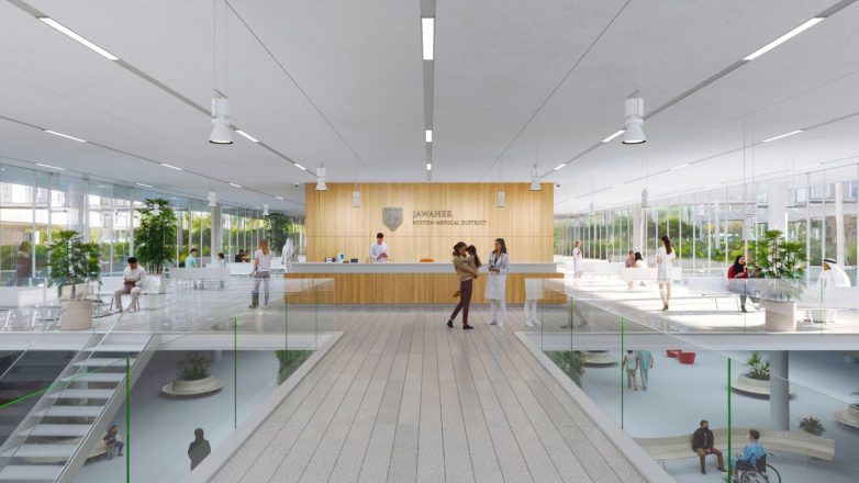 Centralna tačka kompleksa Jawaher Boston će biti bolnica ušuškana ispod nadstrešnice, dizajnirana u umirujućem ambijentu sa pogledom na okolni park.