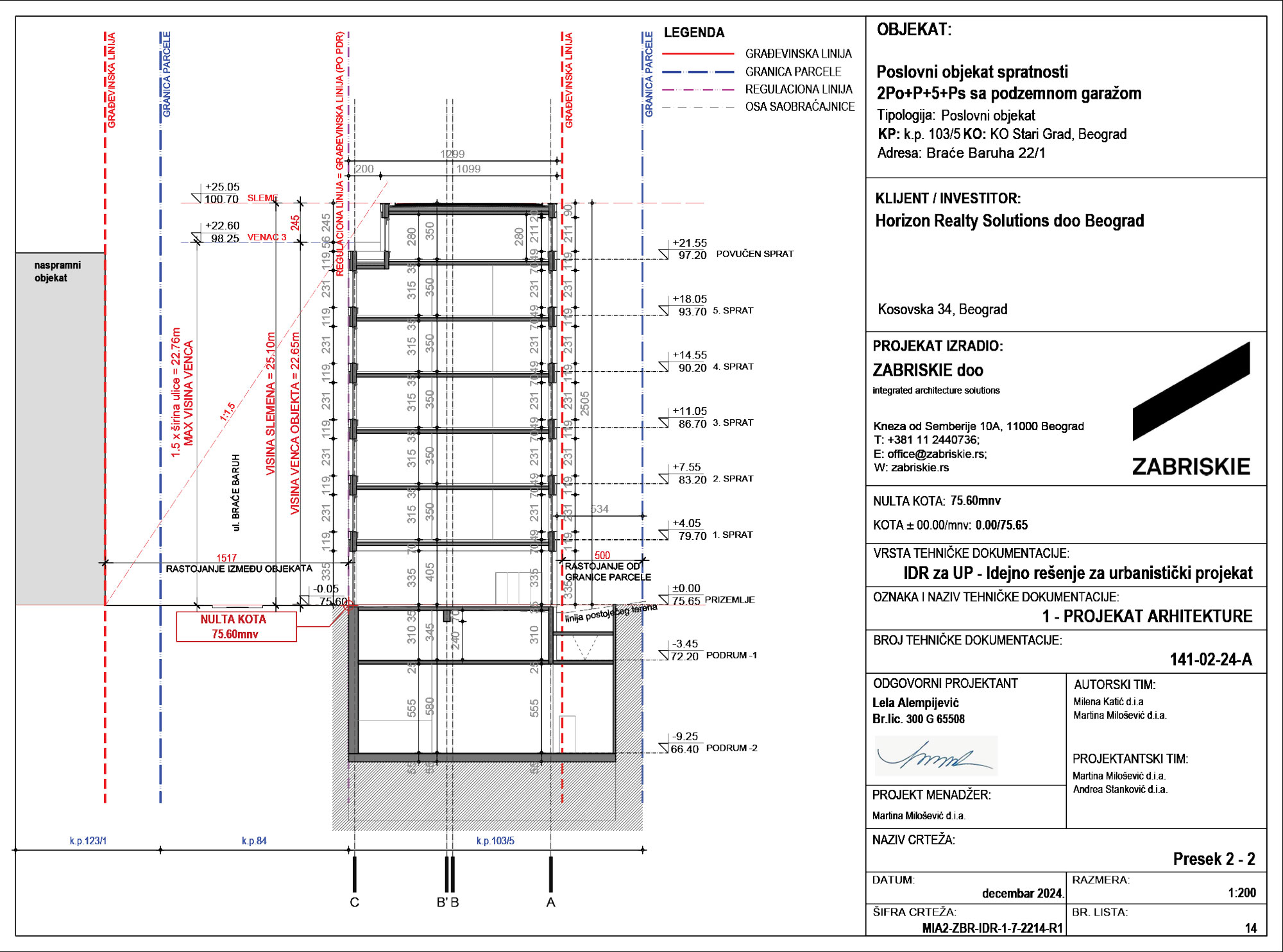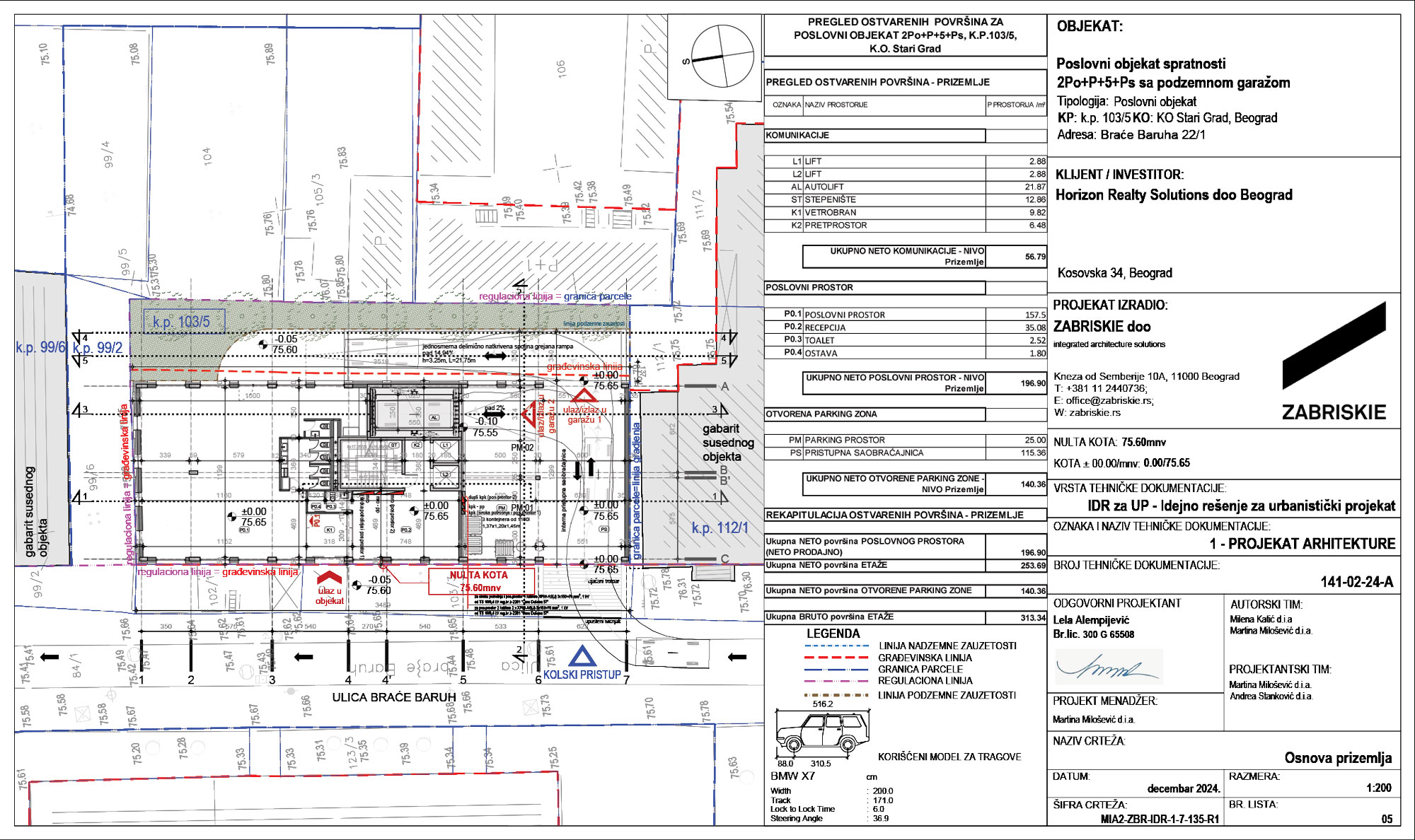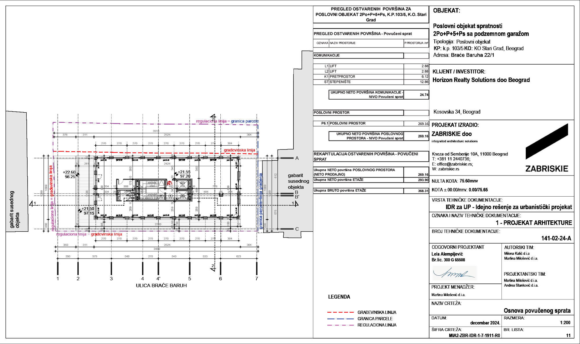 Projektnom dokumentacijom predviđa se izgradnja novog poslovnog objekta, nadzemne spratnosti P+5+Ps, sa dve podzemne garaže na dva nivoa.
