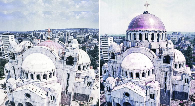Naravno, najdelikatniji segment izgradnje bilo je podizanje kupole Hrama teške 4.000 tona, koje je trajalo 40 dana (simbolično) i dovršeno je 26. juna 1989. godine. Ova tehnika montaže uz pomoć 16 hidrauličnih presa u to vreme se primenjivala isključivo u SAD-u i SSSR-u. Naravno da su tu glavnu ulogu odigrali građevinci-statičari, ali svaki potez odvijao se pod budnim okom arhitekte Pešića – protomajstorom izgradnje Hrama Svetog Save na Vračaru.