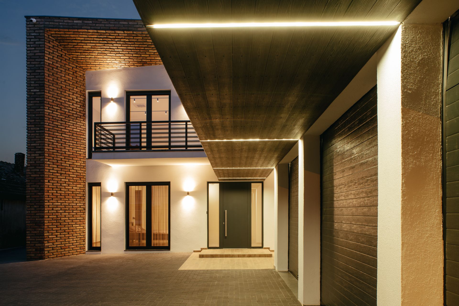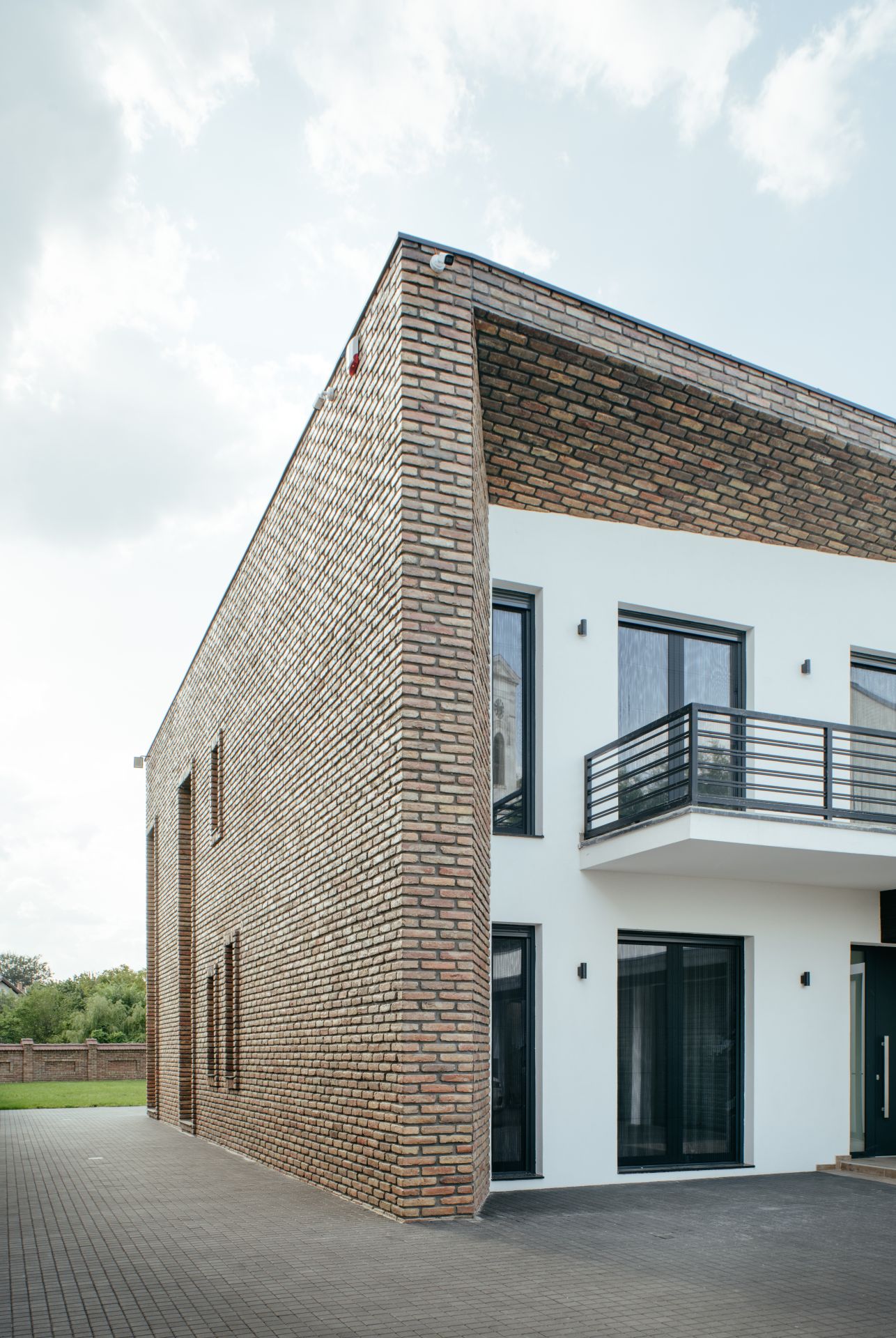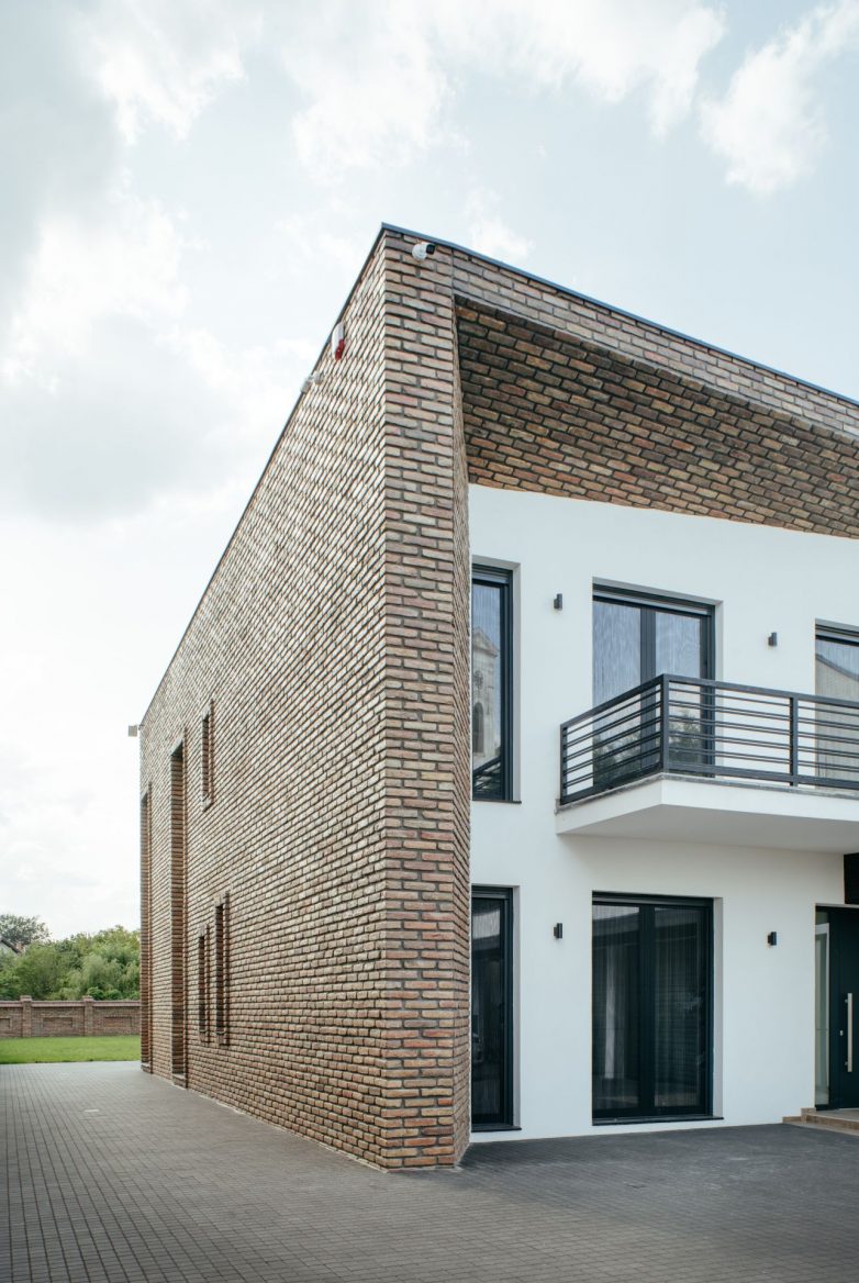 Kada je pak reč o fasadi, fasadna opeka kao prirodni, topli završni materijal kombinovana je sa hladnom i „sterilnom“ demit fasadom.
