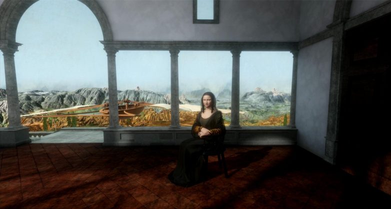 Da bi prostorno iskustvo i percepcija odmakli od uobičajene relacije posmatrač-slika, u virtuelnom modelu dočaran je ambijent u kome je slika nastala, sa potpuno rekonstruisanim okruženjem. Umesto ramom kadriranog ambijenta, posmatrač sedi na tremu zajedno sa Mona Lizom, posmatrajući je iz ugla iz kog je Leonardo slikao. Moglo bi se reći da to više nije slika „Mona Liza“, već je to Leonardova Mona Liza, model za slavno ostvarenje. Ambijent je upotpunjen zvucima prirode, čime virtuelno iskustvo postaje još realističnije.