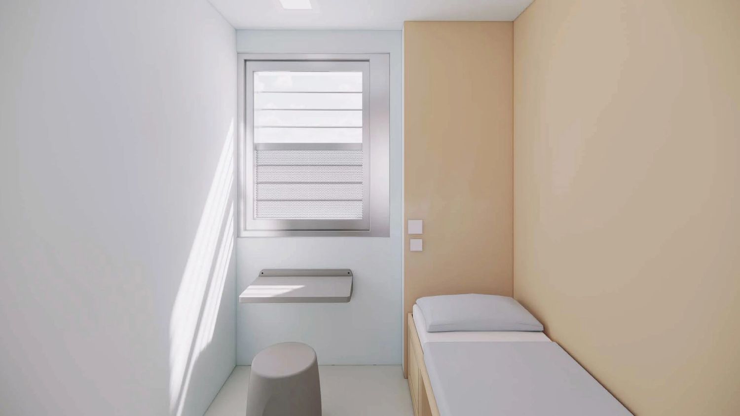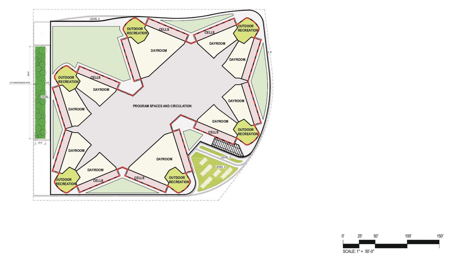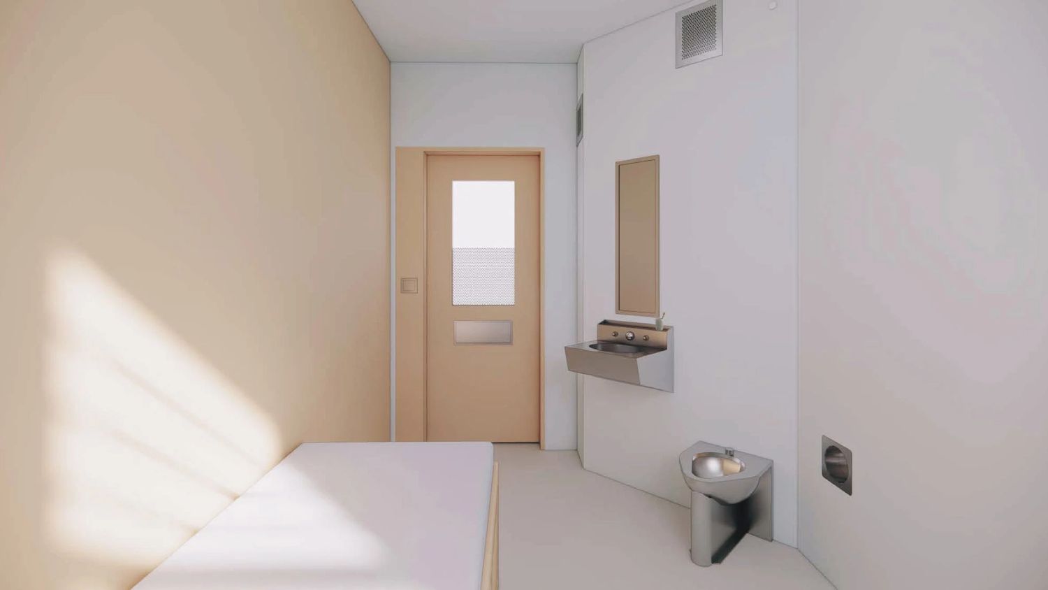 Na renderima prostora ćelija može se videti da one imaju prozor, tu su krevet za jednu osobu, sto i stolica, toaletna šolja i lavabo, a zidovi su delimično obloženi drvenim panelima. Projektom je planirano i uređenje okolne ulice i pejzaža u saradnji sa njujorškim studiom Quennell Rothschild and Partners.
