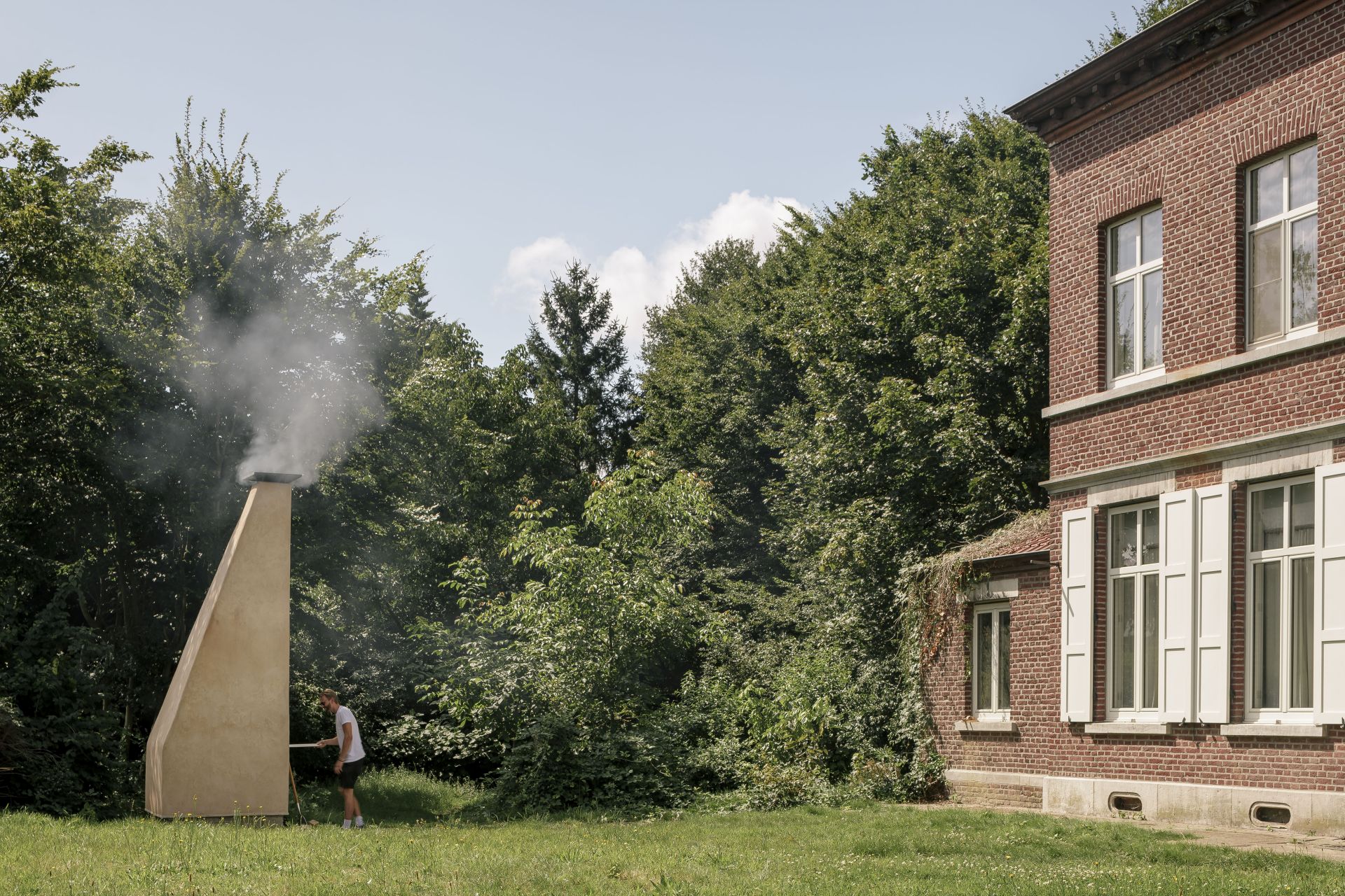 Naime, tokom priprema za rekonstrukciju glavne saobraćajnice kroz Helhteren, brojni objekti su predviđeni za rušenje. Studentima je omogućeno da iz tih napuštenih kuća sakupe građevinski materijal i prenamene ga za potrebe projekta, te su tako temelji paviljona i peći izrađeni od peska, šljunka i betonskih blokova uzetih iz bašta ovih objekata.