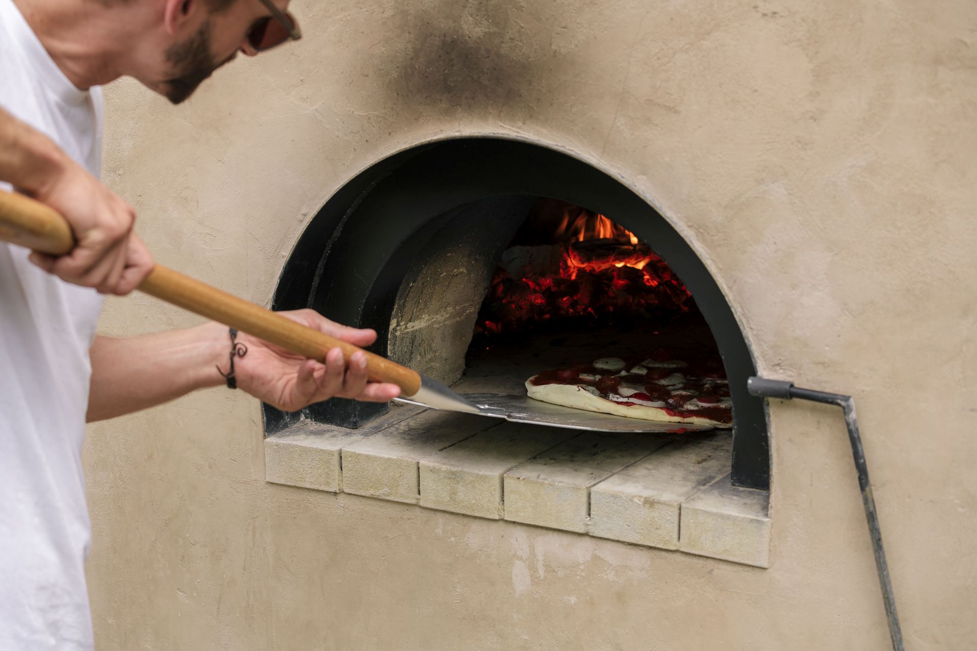Klupa unutar paviljona je ozidana kompresovanim zemljanim blokovima (CEB), dok je peć izgrađena od ćerpiča — nepečenih zemljanih blokova sušenih na suncu. Nakon što je prekrivena s dva sloja blatnog maltera, peć je dobila završni sloj od krečnog maltera, koji je obezbedio otpornost na vremenske uslove.