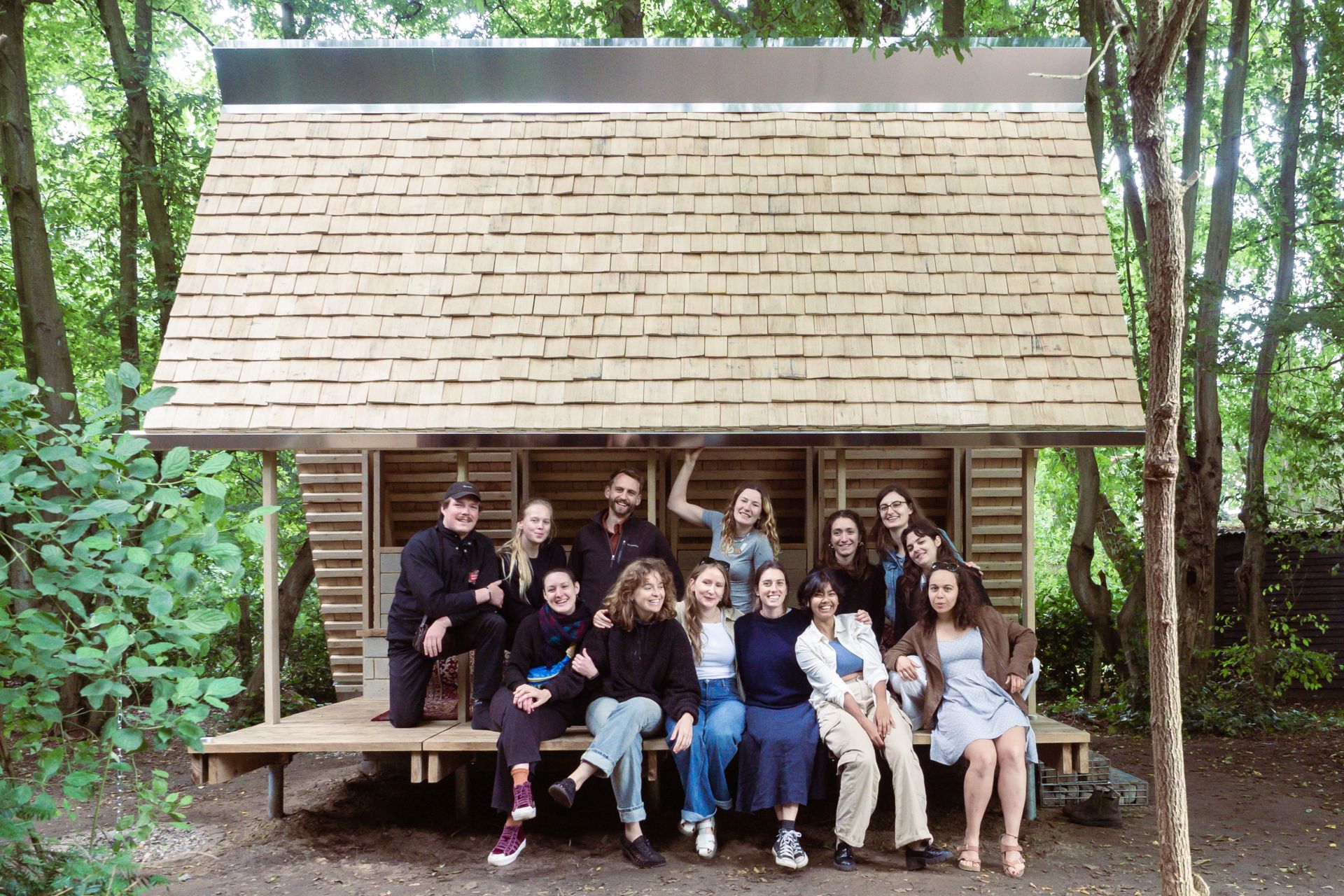 Radili su ruku pod ruku sa njima, zajedno projektovali i izgradili paviljon i peć, razmenjujući znanja, alate i priče. Posebno važan momenat bila je saradnja sa lokalnom tehničkom školom, čiji su učenici pomogli u sečenju šindre za krov.