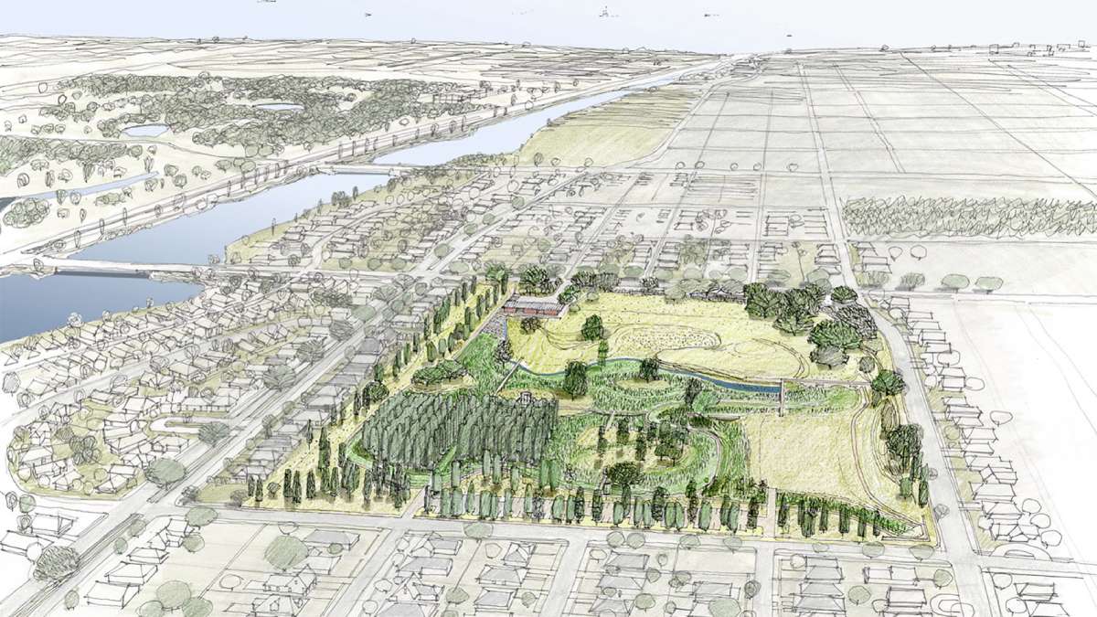 Planirano močvarno područje biće formiran na zemljištu katoličkog samostana koji zauzima površinu od 25 hektara, a planirana transformacija biće izvedena prema projektu kompanija Waggonner & Ball i Carbo Landscape Architects.