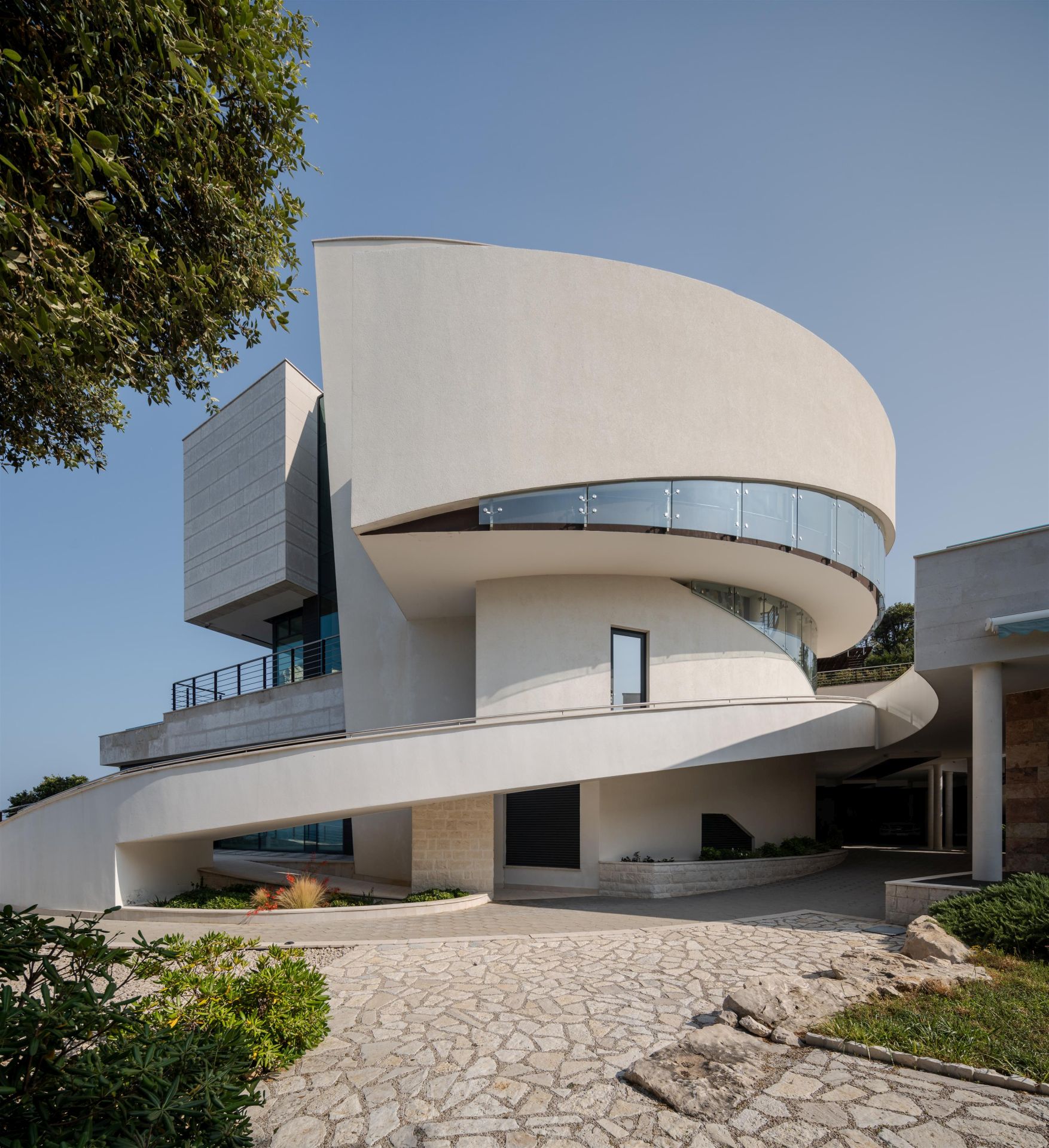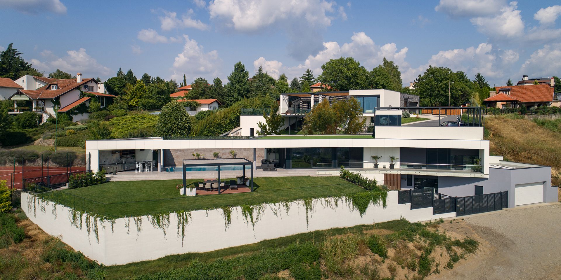 Kuća od 912 m² na padinama Fruške gore oblikovana je dijagonalom terena, uvučenim volumenima i promišljenim pozicioniranjem staklenih površina. Smeštena u Ulici Lepe Kate 3 u Sremskoj Kamenici kod Novog…