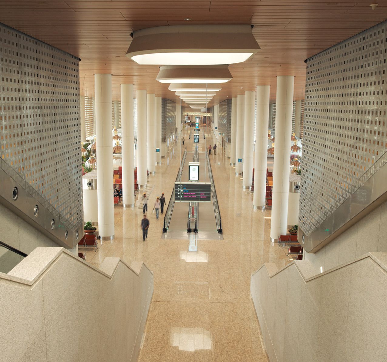 Ovaj minimalistički aerodrom, koji je dizajnirala globalna arhitektonska firma HOK, dom je katarskih nacionalnih avio-kompanija.