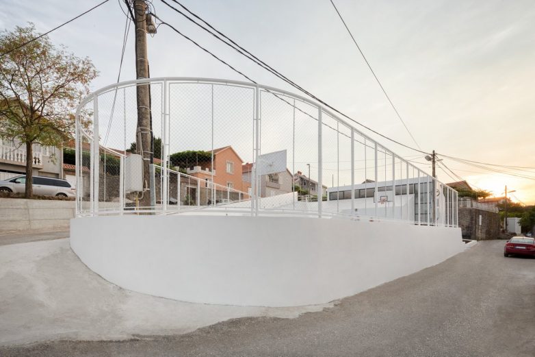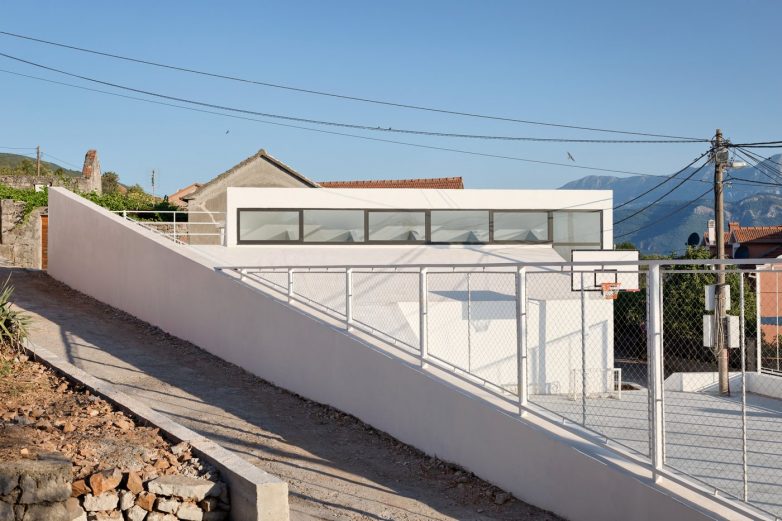 Unutrašnjost centra mesne zajednice je tako dobila karakter paviljona apsolutnog prostora, bez dodatnih otvora na fasadama, u kome događaj menja prostornost. Dematerijalizacija svih spoljašnjih i unutrašnjih površina postignuta je upotrebom beline koja diskretno korespondira s tradicionalno belim prozorskim oknima i kapcima (škurima) okolnih kuća. Belina određuje granicu celog gabarita čija kontura, načinjena od podzida različite visine i debljine, asocijativno referiše na geometrizovane kamene suhozide prisutne u mediteranskom kraškom pejzažu. Čak se i bela metalna ograda, koja funkcionalno uokviruje deo spoljašnjeg prostora, organski diskretno nadopunjuje na ostale oblike građenog sklopa, a njena ritmična mrežasta polja oponašaju dominantne kamene teksture u okruženju.