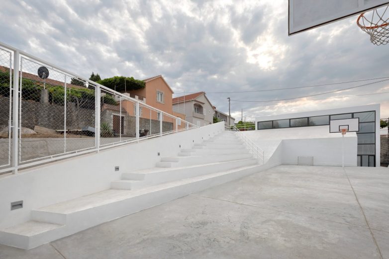 Dok teren lokacije definiše otvoreni prostor, koga čine poligon za različite aktivnosti (sportske, kulturne, zabavne) i tribine gledališta, objekat centra mesne zajednice je oblikovno i proporcijski usklađen sa okolnom seoskom arhitekturom arhetipske kuće široko rasprostranjene u primorskoj vernakularnoj arhitekturi. Da bi se izbegla monolitnost ovakvog objekta javne namene, te ostvarila kompoziciona skladnost s ostalim gradivnim elementima izvajane strukture, arhitekta je vertikalnim smicanjem dveju polovina objekta ujedno postigao gradacijsko raslojavanje površina (tako da se krovna ravan nižeg dela spušta do nivoa tribina prateći njihovu konturu) i oslobađanje delova vertikalne spojne površine, čime je omogućeno indirektno prirodno osvetljenje unutrašnjeg prostora centra.