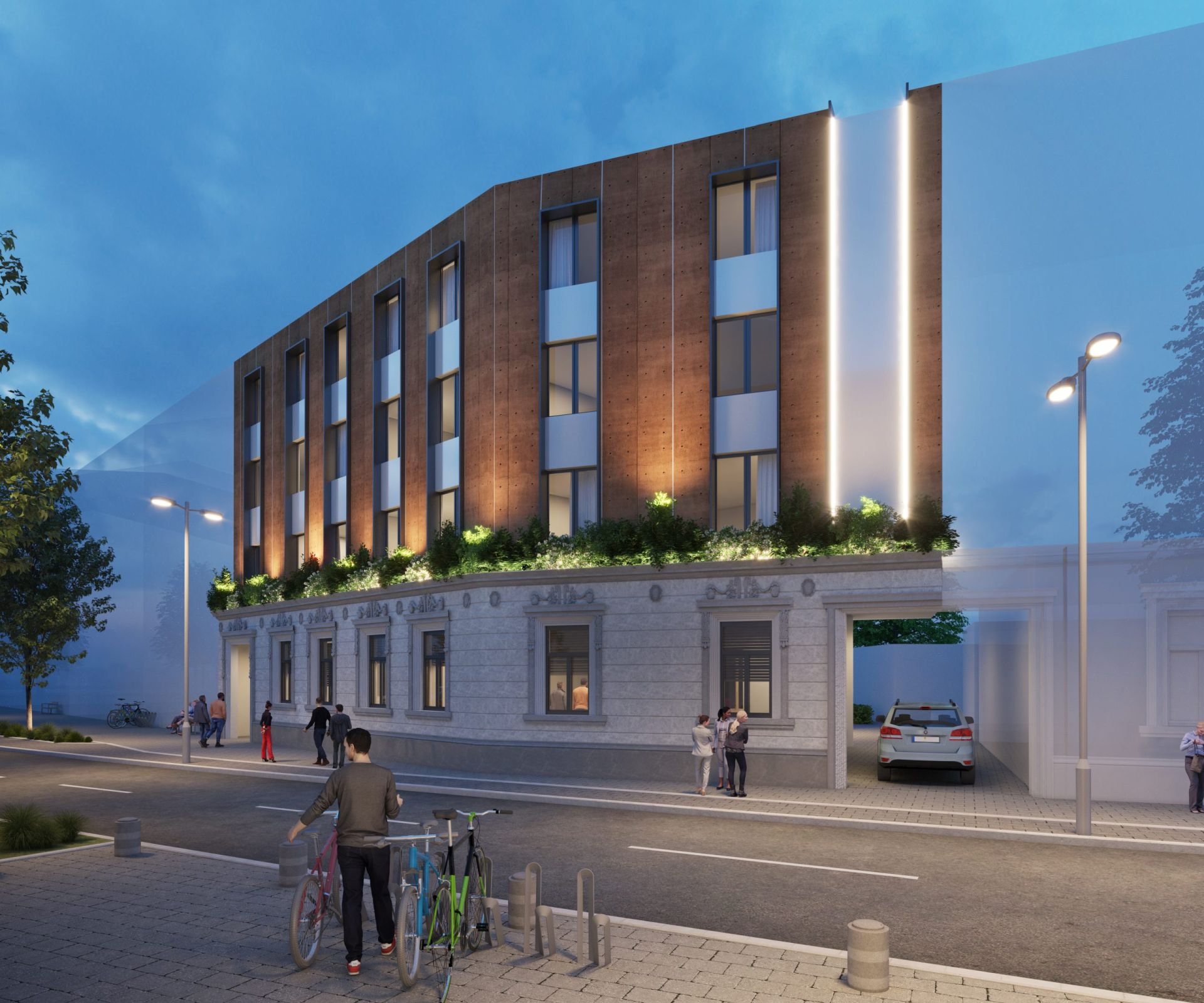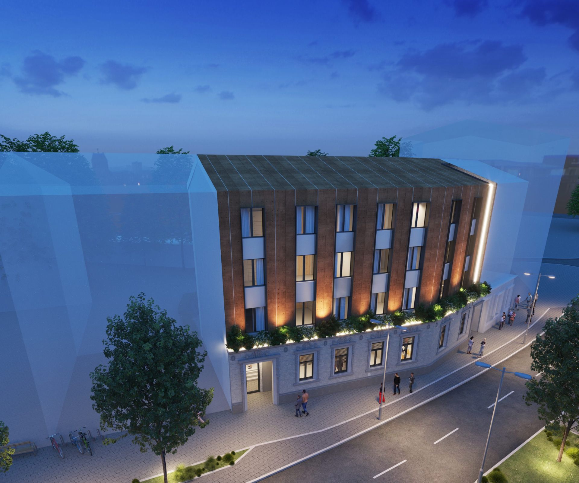 “Karakteristika urbane strukture u centralnoj zoni Vršca je izgradnja objekata koji formiraju neprekinuti ulični niz i međusobno su uzidani, što nameće da i predmetni objekat bude planiran kao dvostrano uzidani objekat. Prednja fasada sa ajnforom, nalazi se na regulacionoj liniji i sačuvana je na način da sa novoprojektovanim delom čini jednu skladnu celinu” – kaže se na sajtu Bureau Cube Partners.
