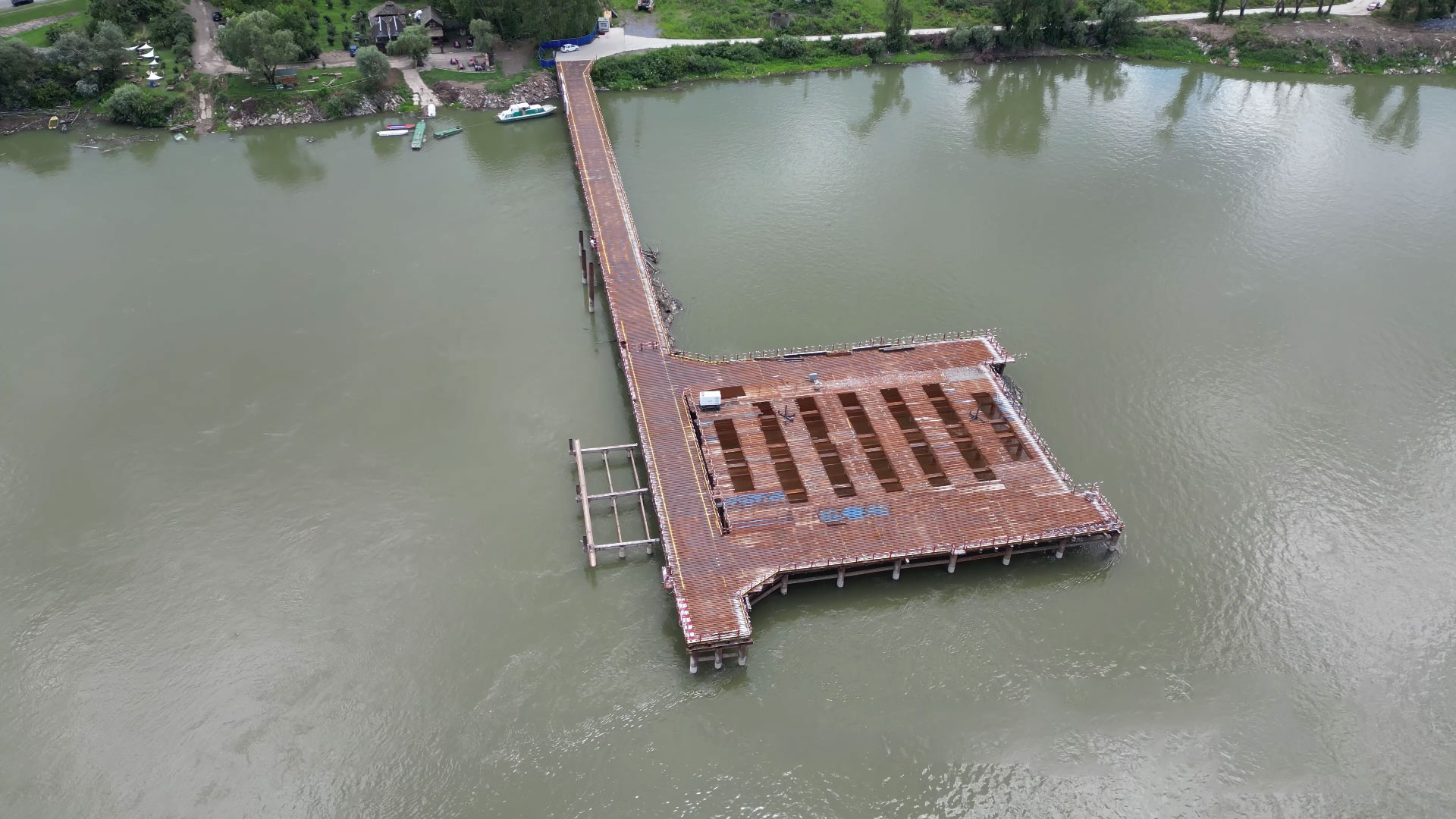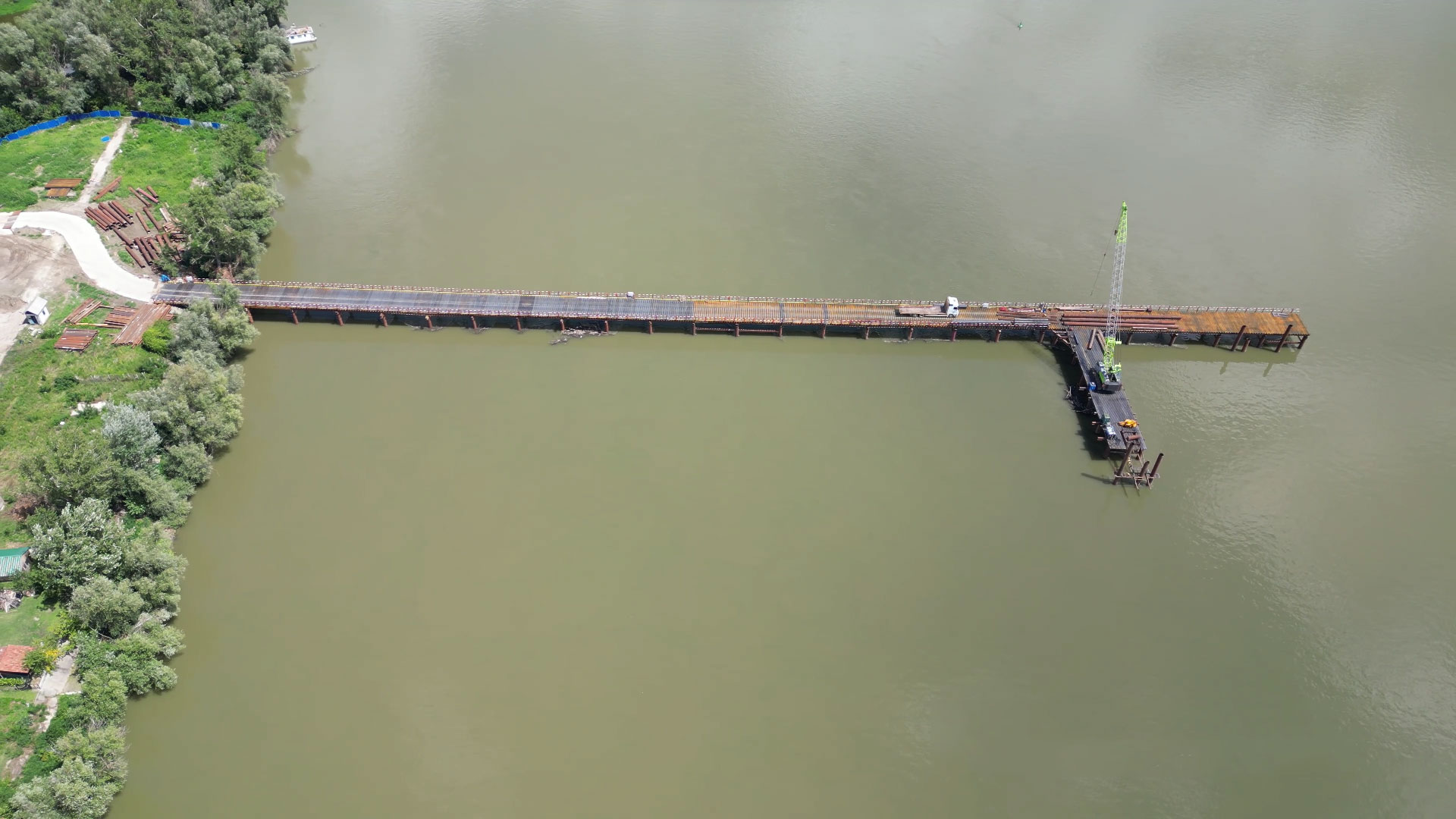Radovi na izgradnji četvrtog mosta u Novom Sadu počeli su u februaru 2023. godine i za sada je izvedena pomoćna konstrukcija kao što se vidi na video snimku.