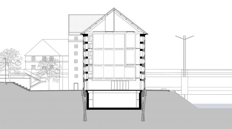 U novom suterenu se nalazi višenamenska sala, galerija namenjena pre svega predstavama, kao i svlačionice i toaleti za posetioce, toplana i radionica za pripremu izložbi. Deo drveta originalnog krova, koji je još uvek bio upotrebljiv, arhitekte su u saradnji sa umetnikom Tobijasom Putrihom ponovo iskoristile za drvene klupe za galerijske prostore.