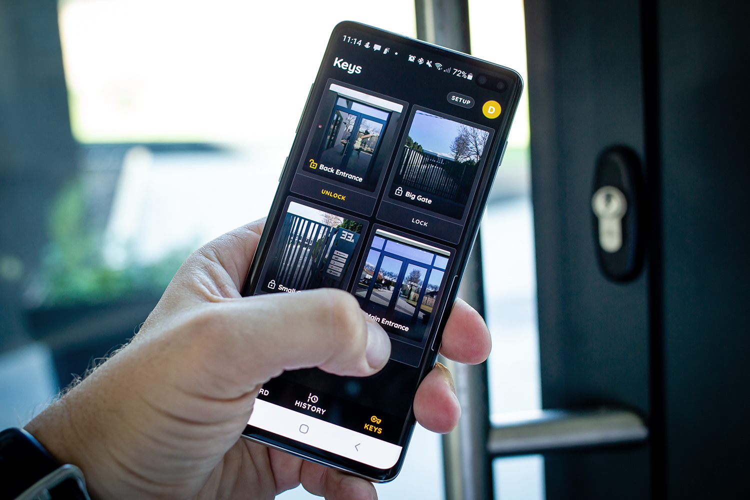 S druge strane, video nadzor je integrisan tako da se uvek mogu pratiti kamere sa bilo kog mesta, preko bilo kog mobilnog uređaja. Zatim, zaposleni imaju različite nivoe pristupa, a u skladu sa tim i različite korisničke naloge. Primera radi, osoba zadužena za servere ima pristup ovoj prostoriji i otključava je pomoću svog pametnog telefona. Polivanje trave (prskalice) je podešeno da se automatski aktivira u određeno doba dana, a senzor vlažnosti i temperature daje potrebne informacije za uključenje/isključenje. No, postavlja se pitanje kako se u zgradu ulazi/izlazi kada nestaje struja i šta se događa kada im se isključi internet.