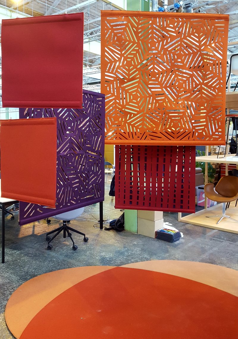 Još jednom dokazano je da koncept otvorenog prostora za dizajn kancelarija i nije baš najbolje rešenje, jer mnogo kompanija dolazi sa različitim rešenjima za pregrađivanje i ograđivanje radnih mesta. Različite vrste akustičnih zidova koji mogu promeniti prostore bili su prikazani i na ovom sajmu, a firma Four Design predstavila je super akustične cigle napravljene od akustične pene i vune, dizajnirane da podele prostor i smanje buku. Takođe, dizajneri sve više kreiraju nove „male kancelarije“ koje su napravljene kao sto sa stolicom i dva ili četiri niska zida oko njih, i sve to u cilju pružanja privatnosti.