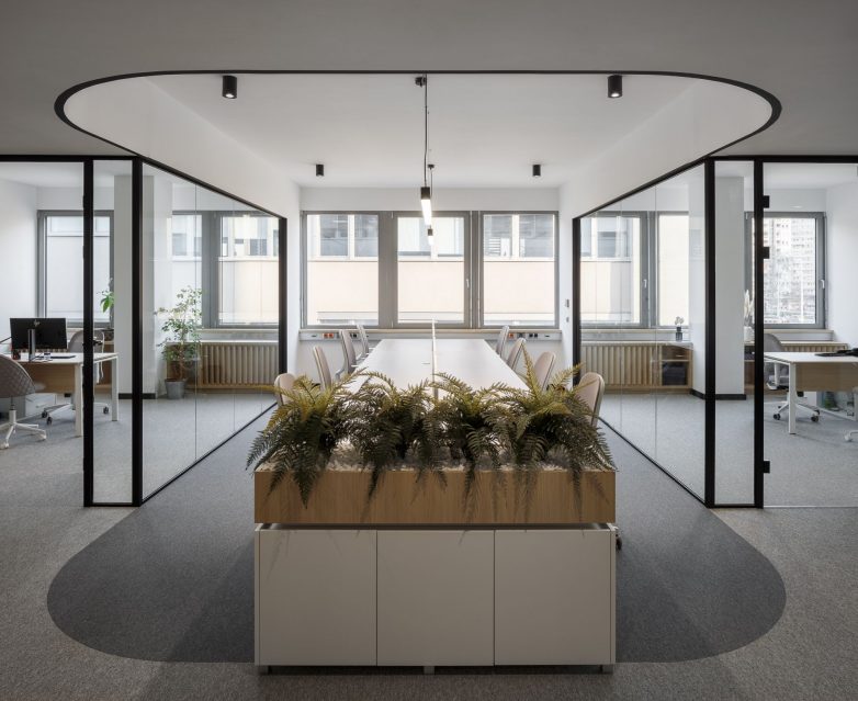 „Ovo je postignuto racionalnom organizacijom departmana i staklenim pregradama koje kreiraju zatvorene kancelarije, a ujedno i segregaciju samih departmana, dok sa druge strane ne stvaraju vizuelnu barijeru u prostoru i omogućavaju da se ostvari utisak jedinstvenog prostora“ – kažu iz B11.